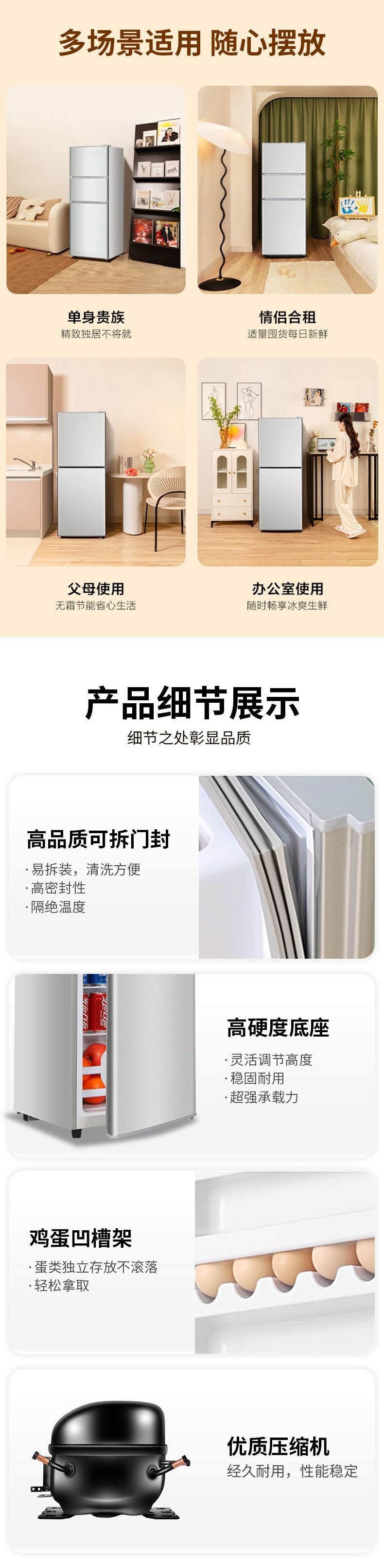 냉장고 양문형 대용량 에너지 절약형 3도어 가정용 기숙사 임대실 소형 냉장고스토어 가기