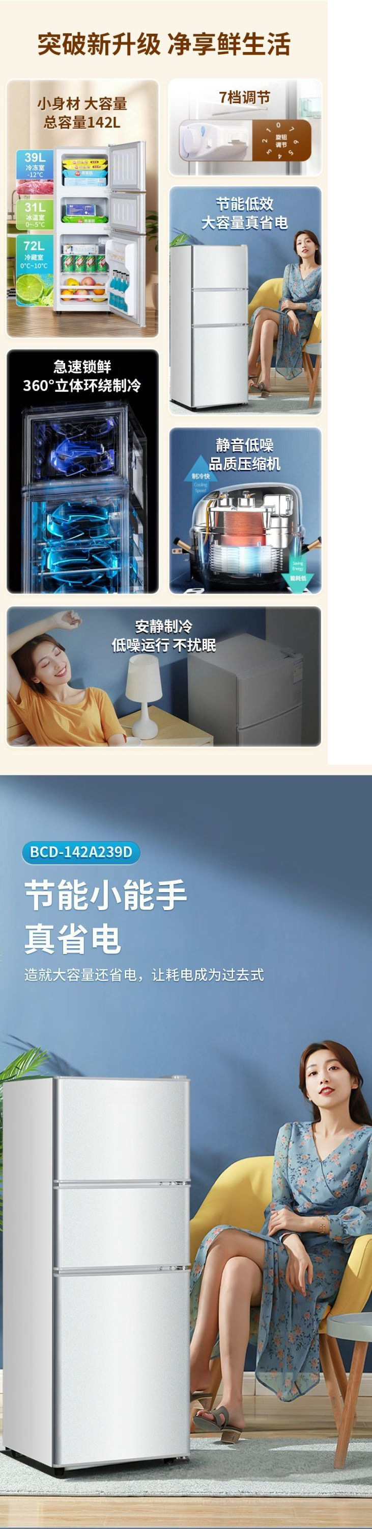 냉장고 양문형 대용량 에너지 절약형 3도어 가정용 기숙사 임대실 소형 냉장고