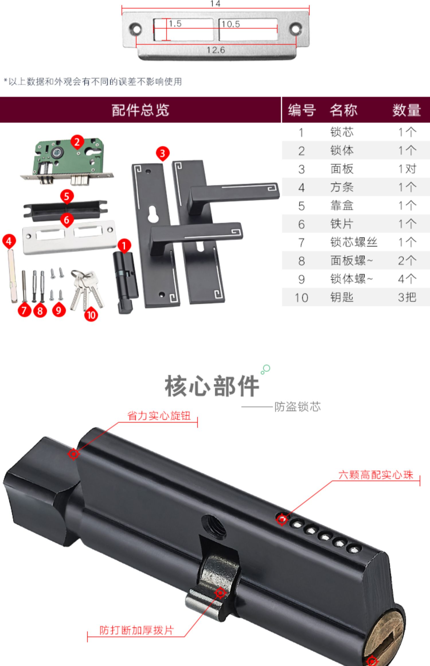 • A형 도어록 + 도어 래치 + 플랫 패널 2-35-50mm-범용 유형-키 포함