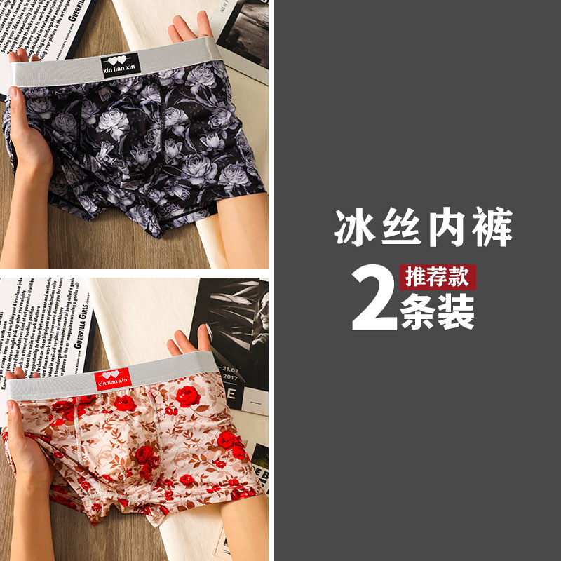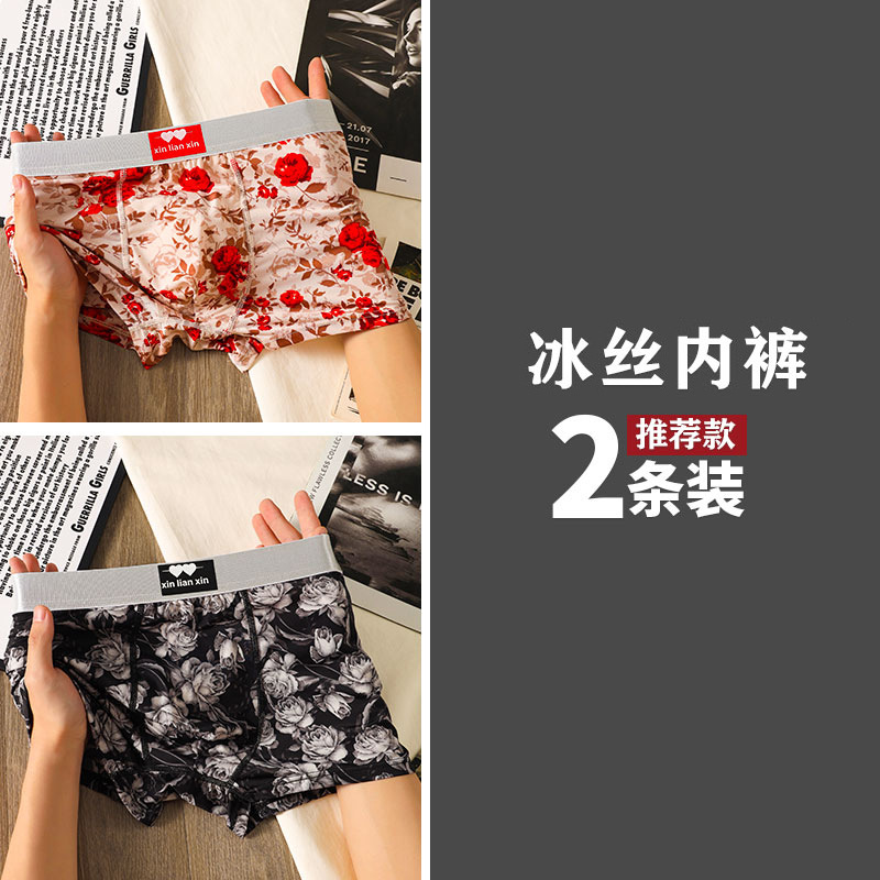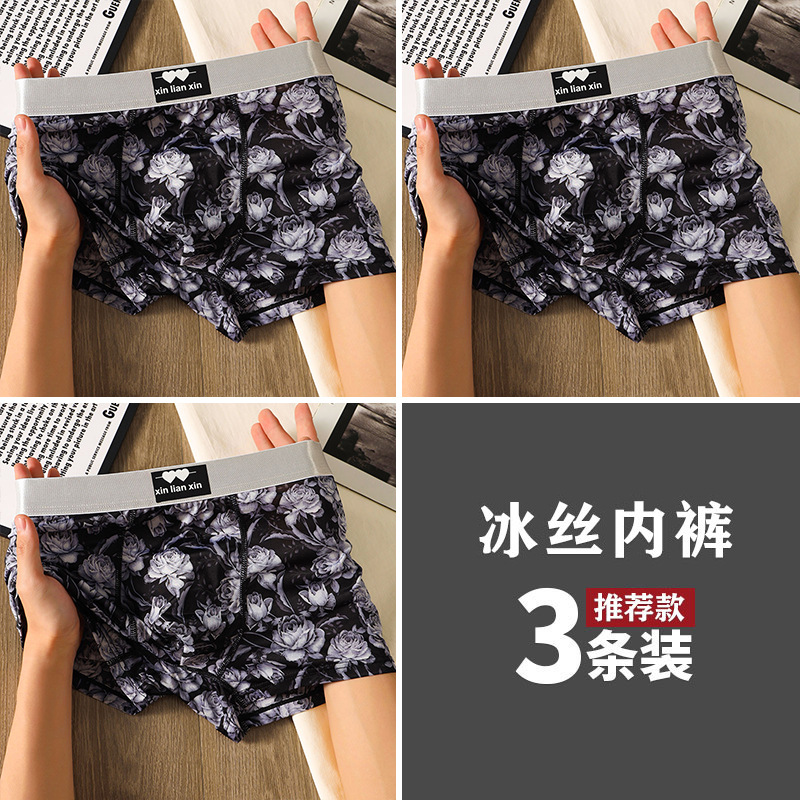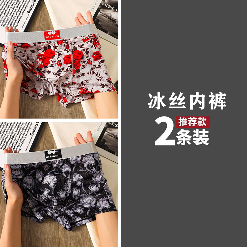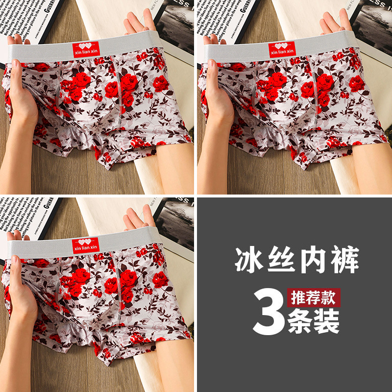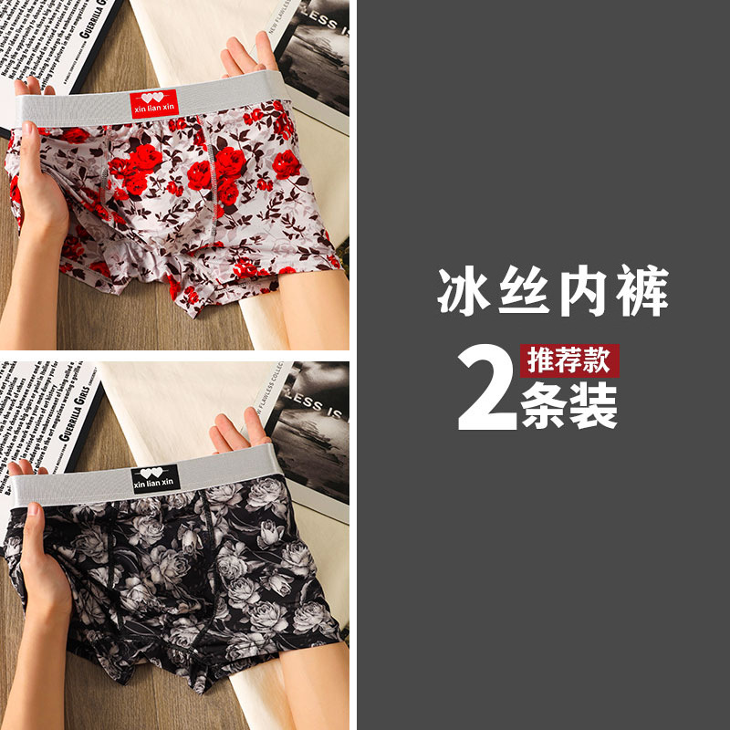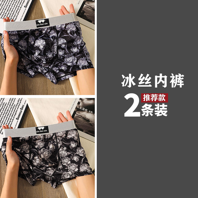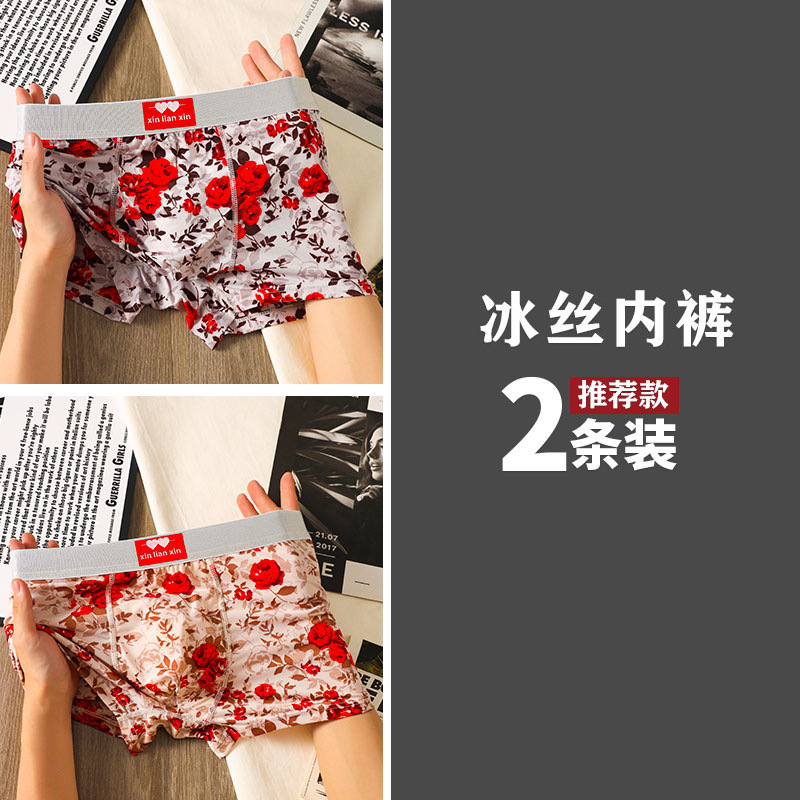 아이스 실크 남성 속옷 트렌디 로즈 프린트 부드럽고 편안하며 패셔너블한 맞춤형 복서 팬티 남성용 중간 허리 복서 팬티스토어 가기