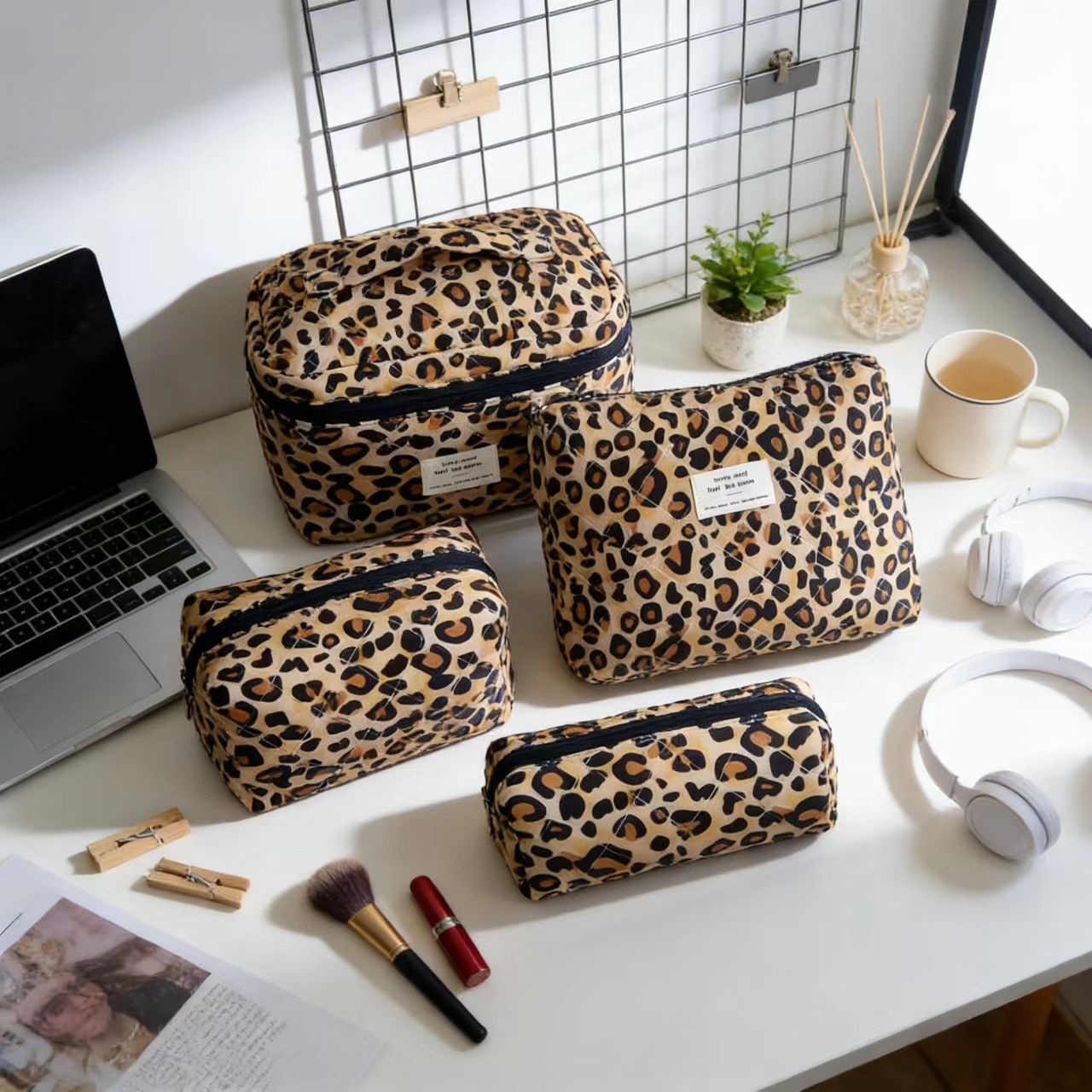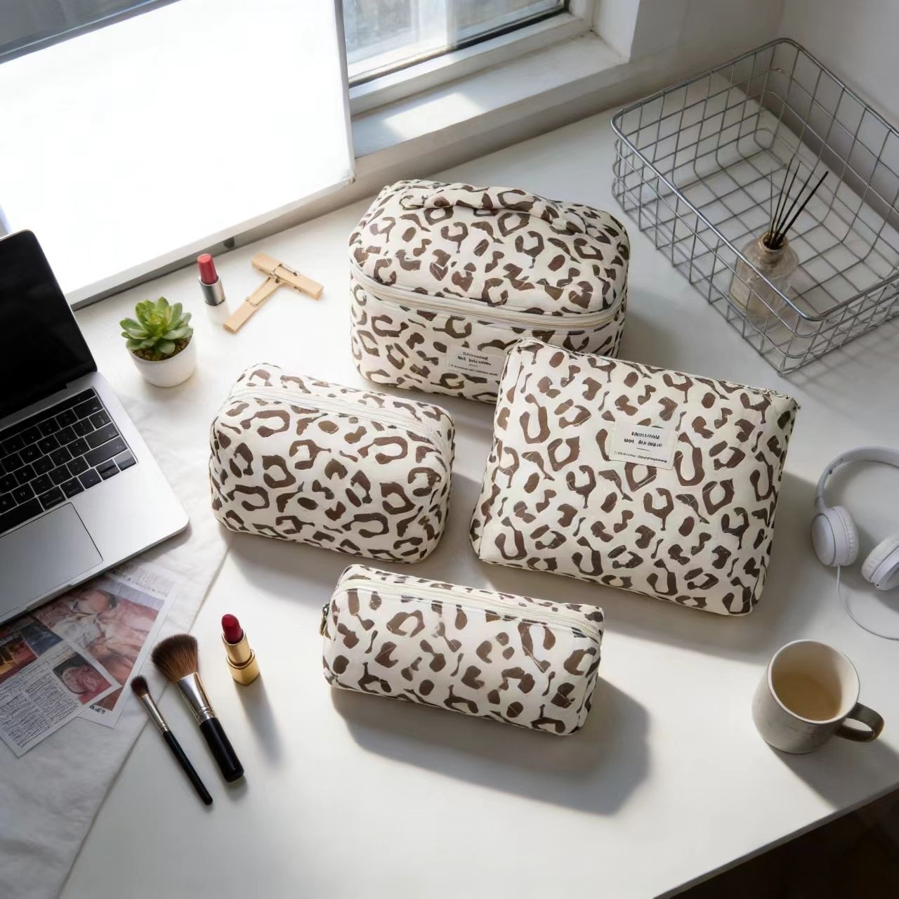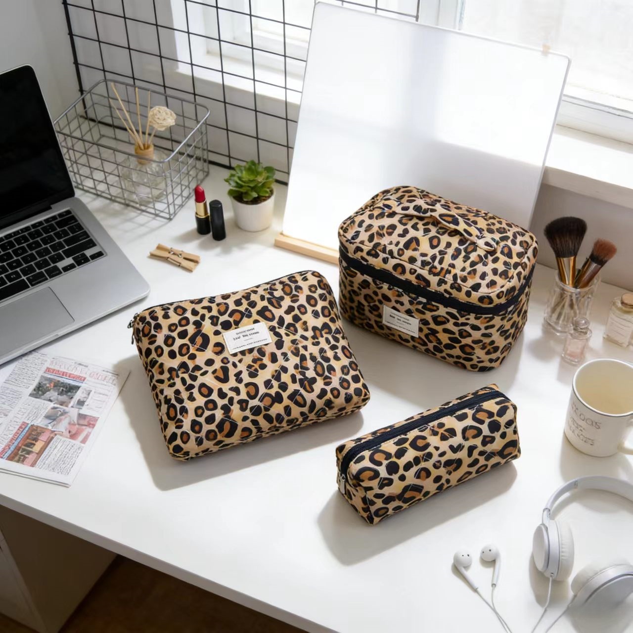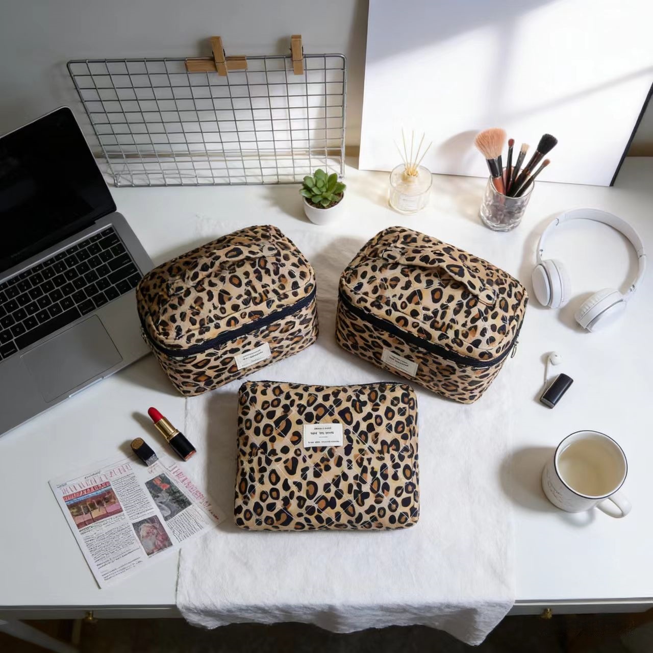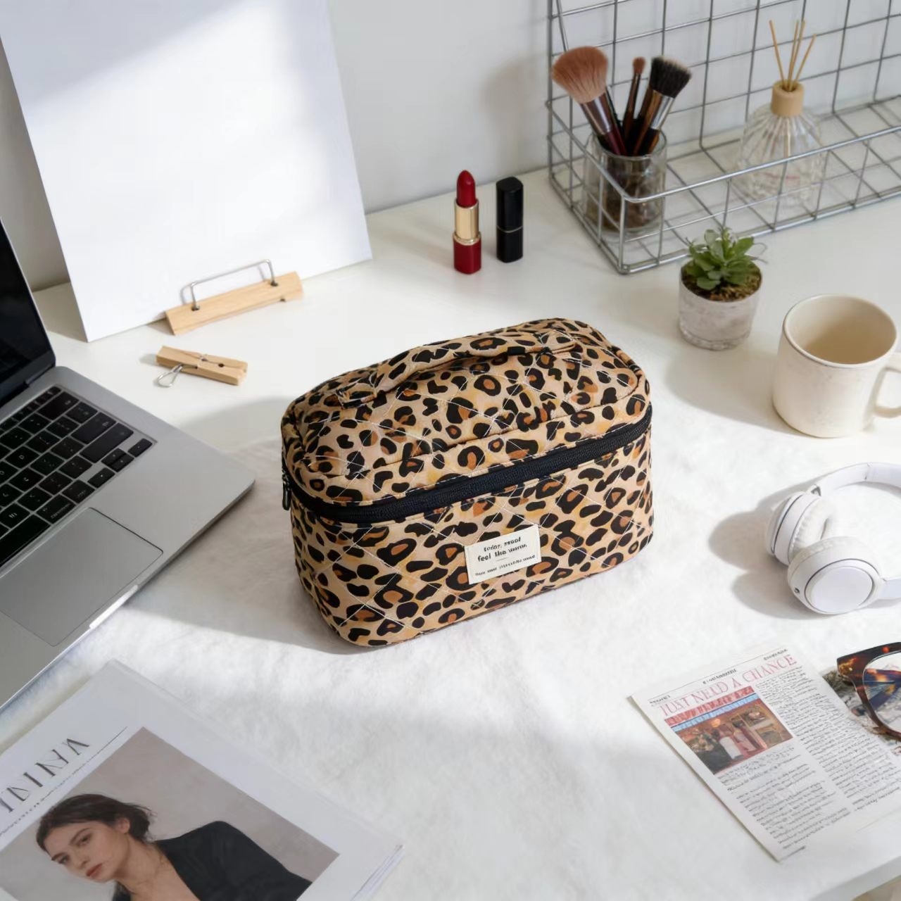 레트로 레오파드 프린트 화장품 가방, 대용량, 분리형 수납공간, 두꺼운 소재, 여성용 휴대용 수납 가방, 세면도구 가방스토어 가기