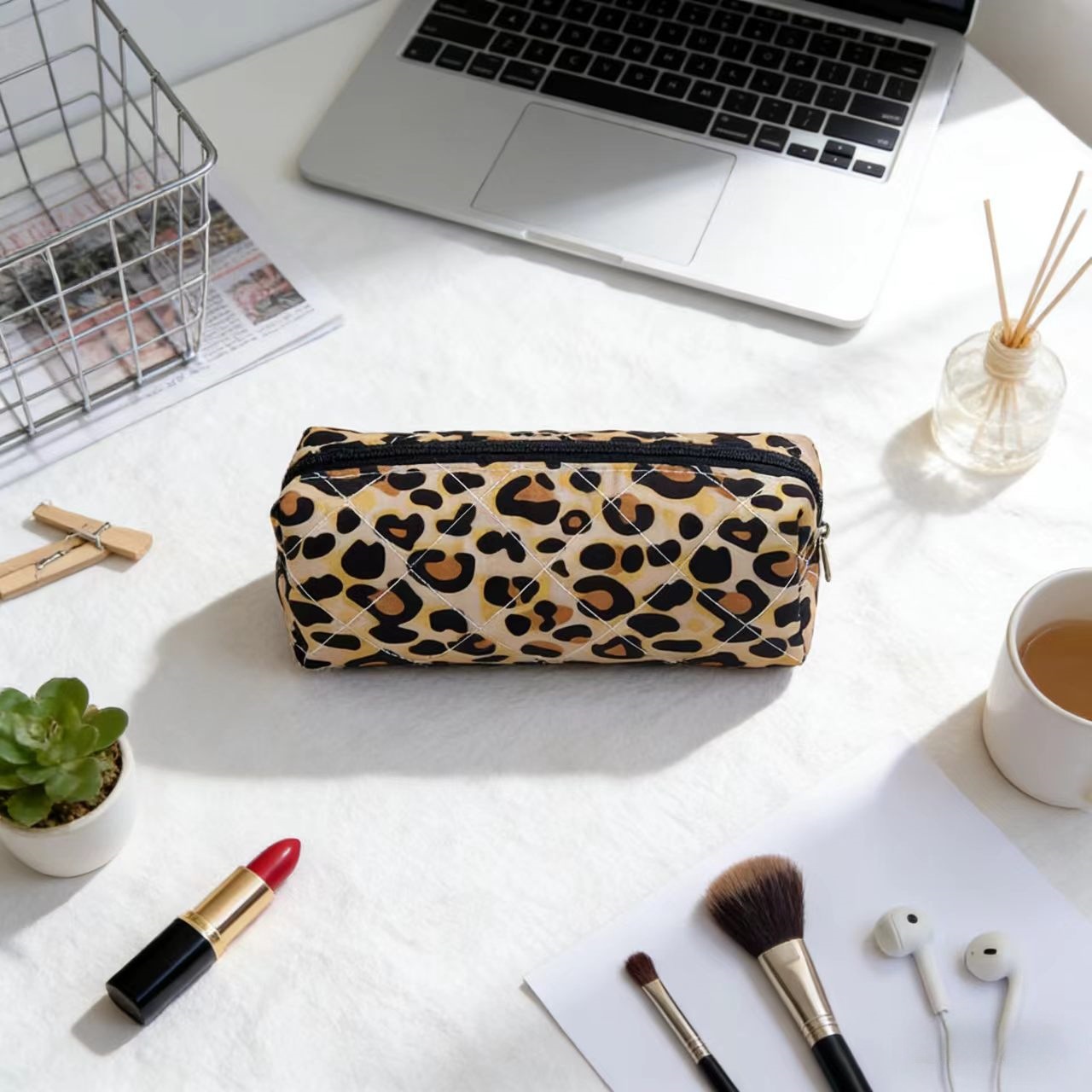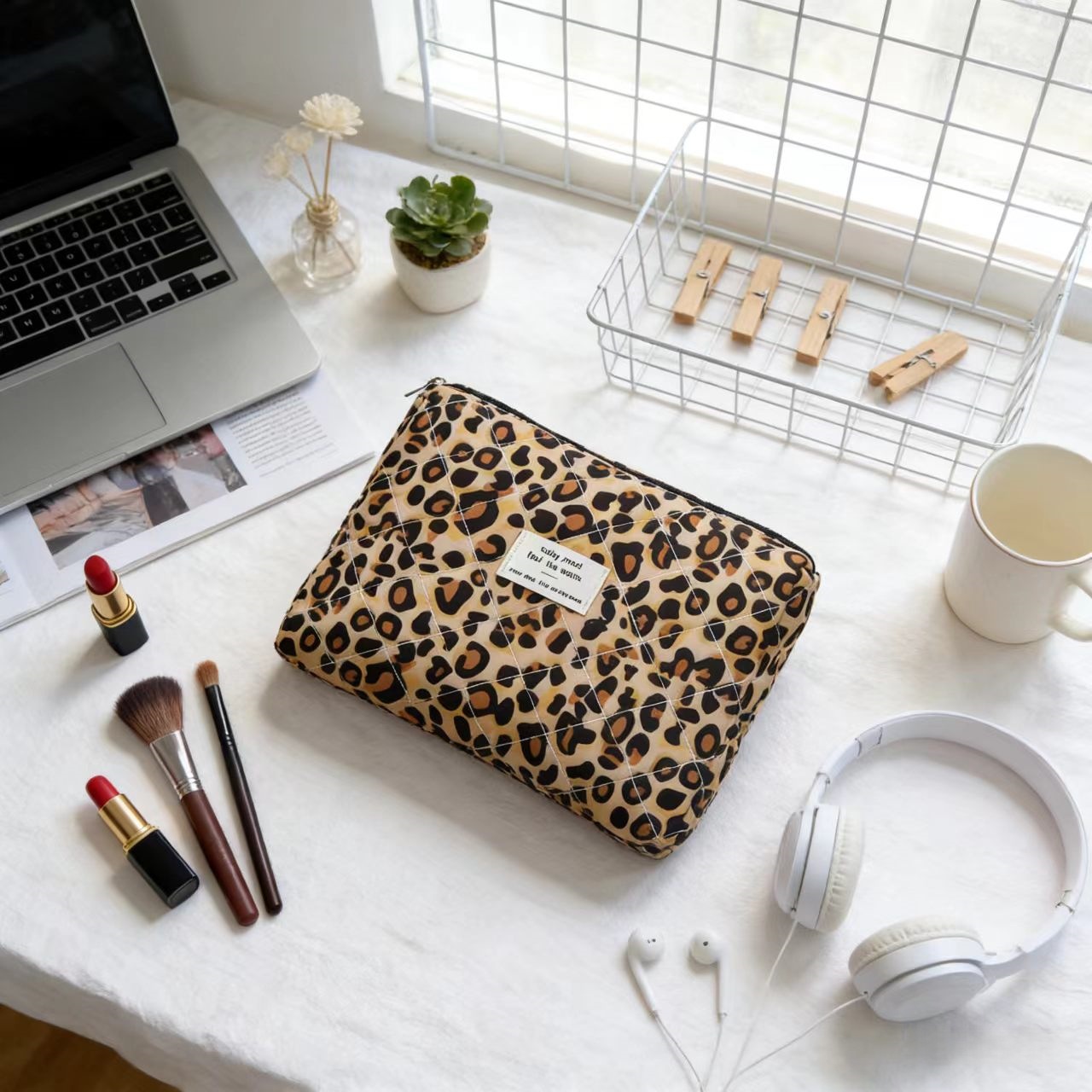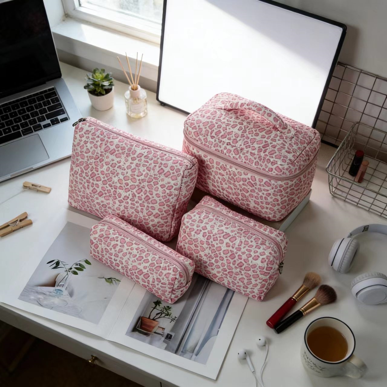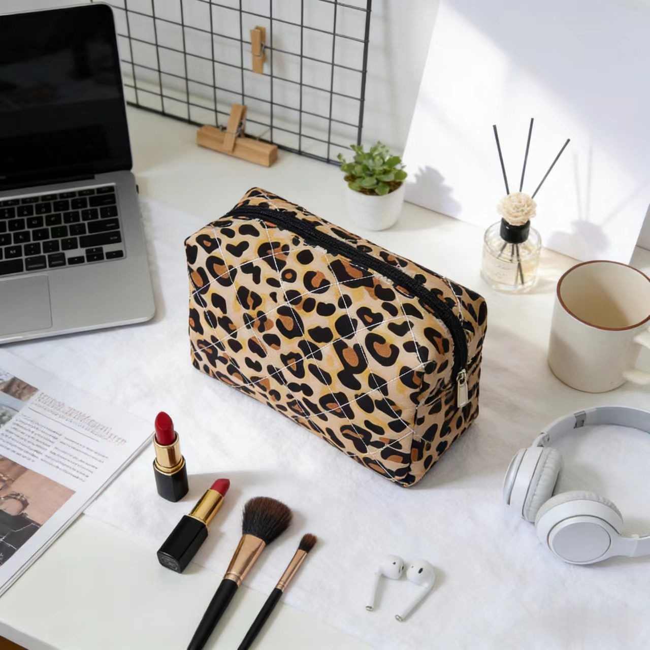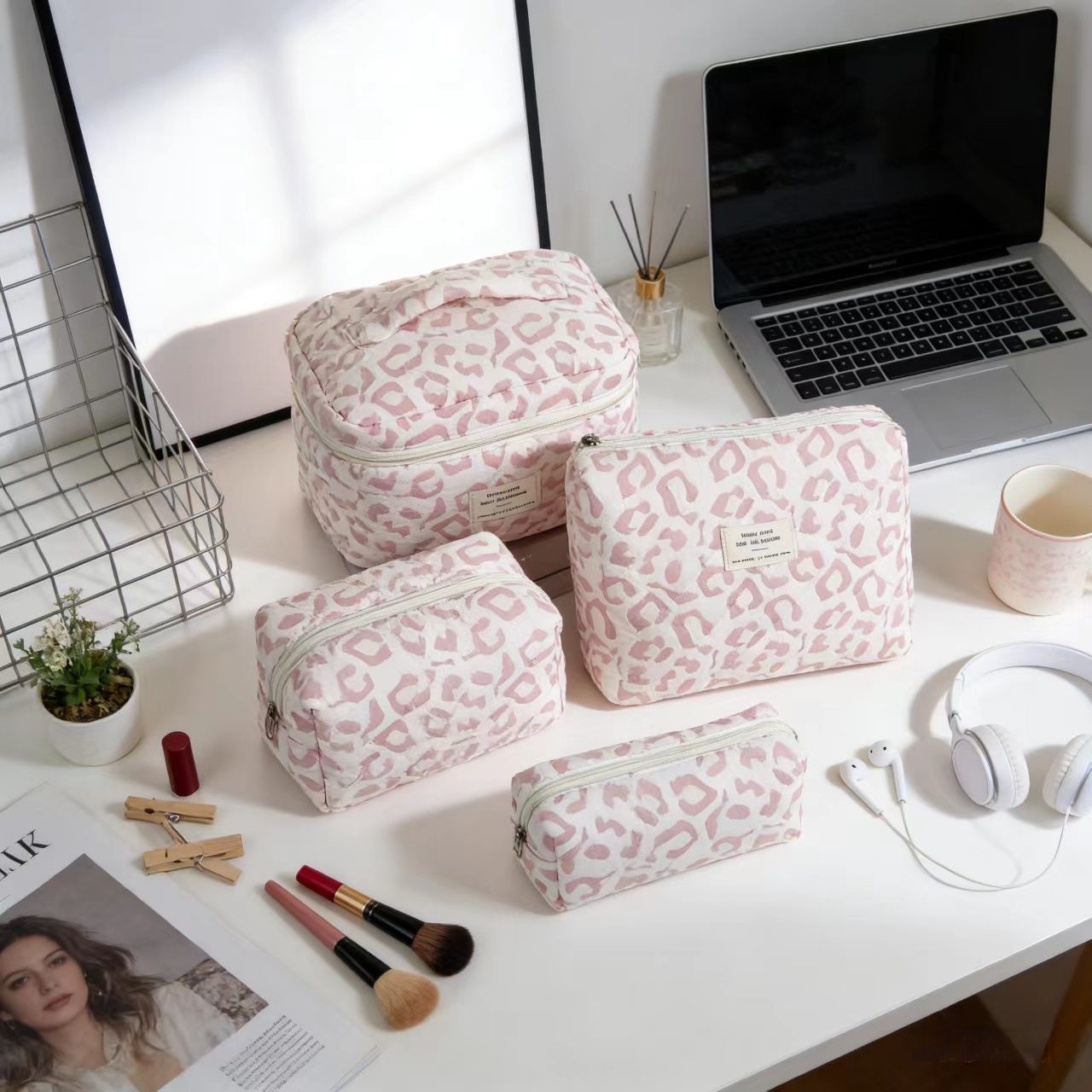 레트로 레오파드 프린트 화장품 가방, 대용량, 분리형 수납공간, 두꺼운 소재, 여성용 휴대용 수납 가방, 세면도구 가방스토어 가기