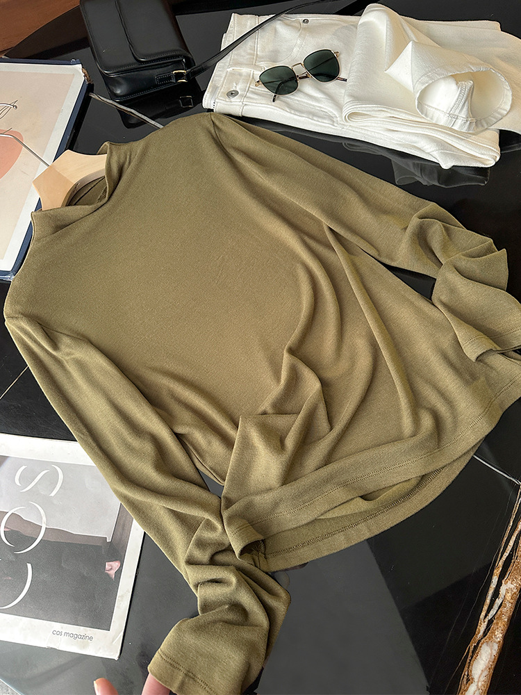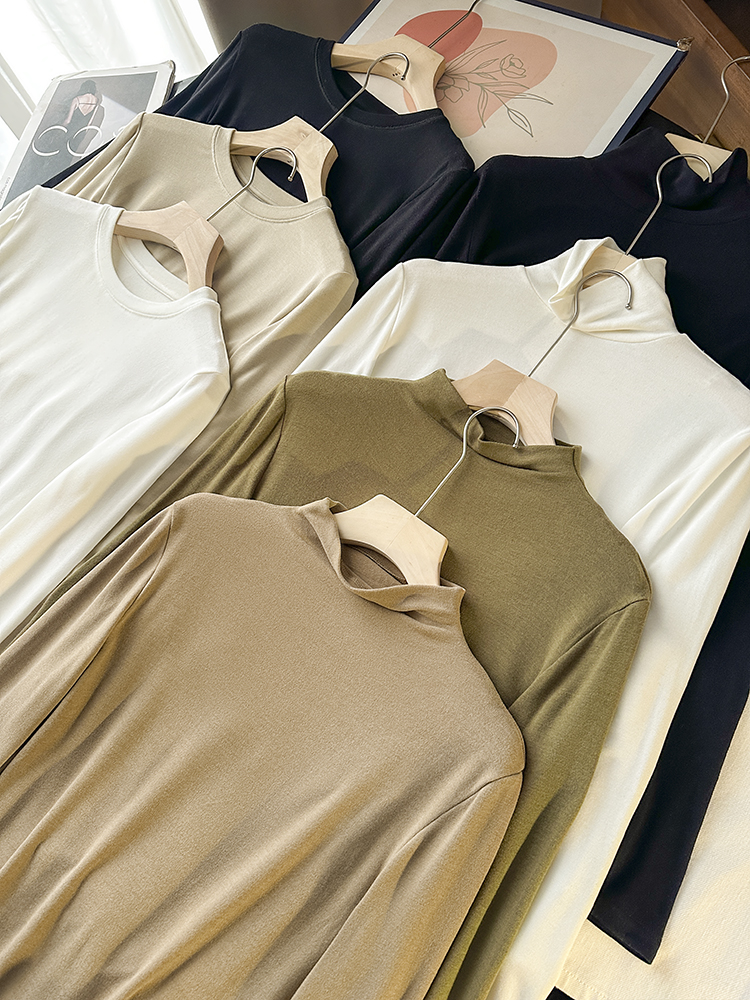 자신을 위한 것! 초극세울모 피부친화적인 이너베이스레이어 탑 하프터틀넥 긴팔티셔츠 여성용 신상품