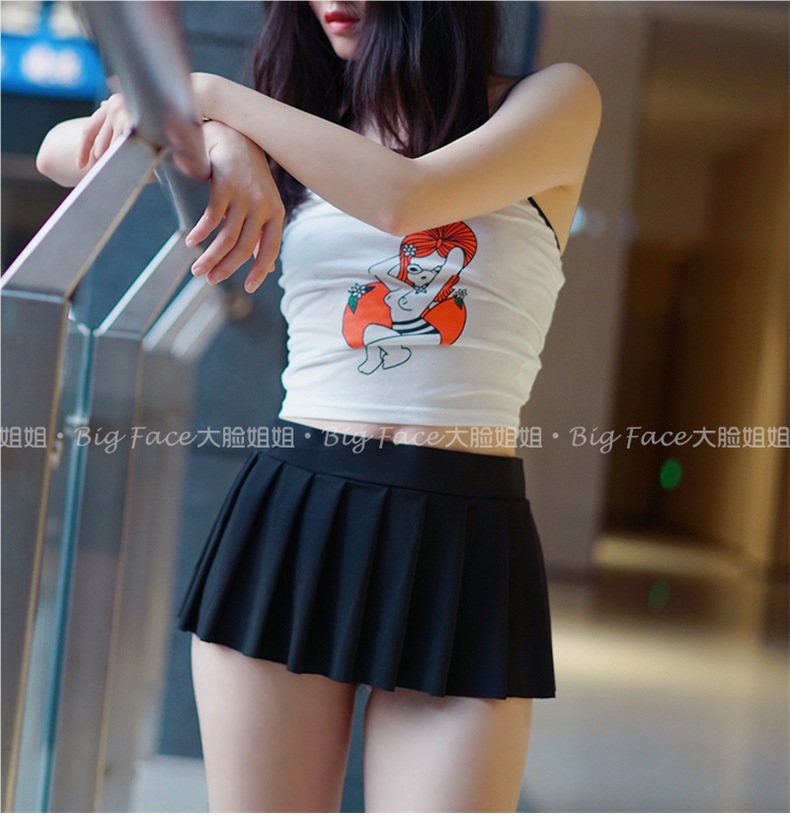 "큰 얼굴 자매" 23cm 계획적인 미니 미니 스커트 여름 로우 웨이스트 플러스 사이즈 스커트 A라인 플리츠 스커트
