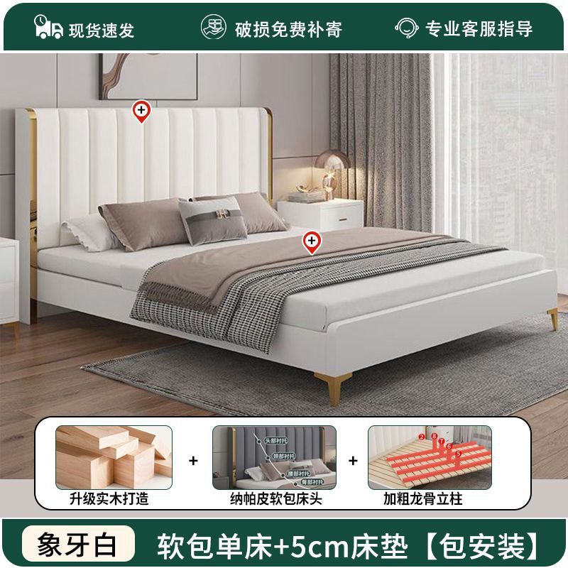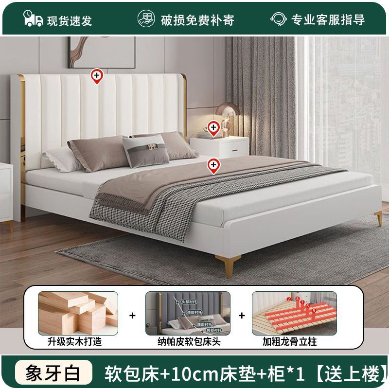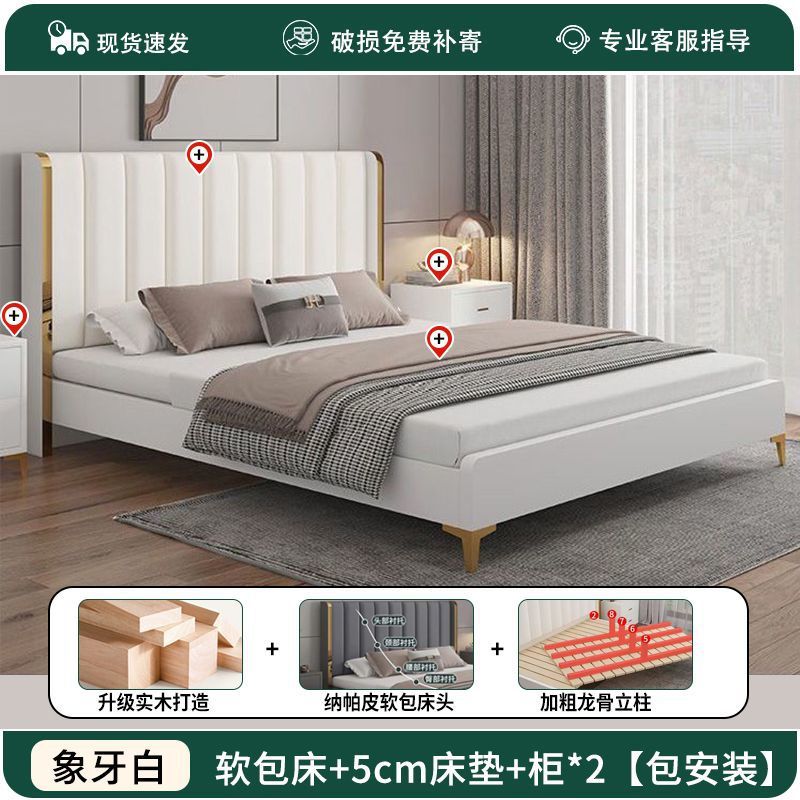 가죽 아트 침대 더블 1.8x 2m 더블 침대 가죽 소프트 커버 1.8m 더블 마스터 침실 라이트 럭셔리 모던 1.5m 웨딩 침대