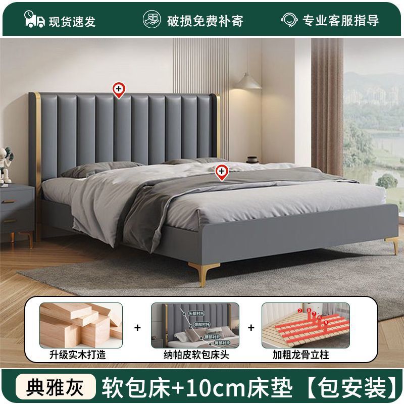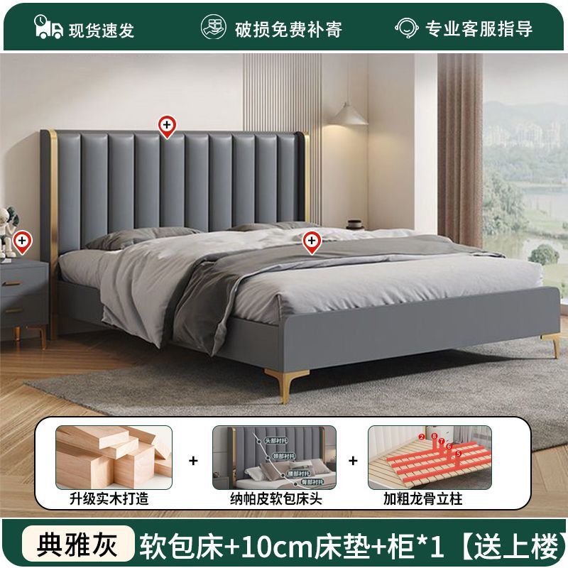 가죽 아트 침대 더블 1.8x 2m 더블 침대 가죽 소프트 커버 1.8m 더블 마스터 침실 라이트 럭셔리 모던 1.5m 웨딩 침대스토어 가기