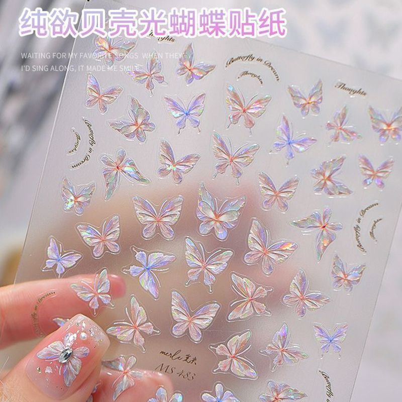 • 조개껍데기 광택 나비 네일 스티커 - 평면