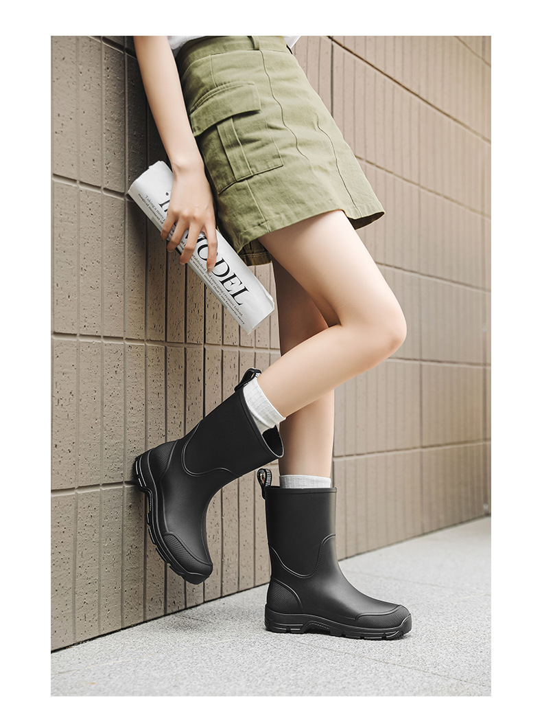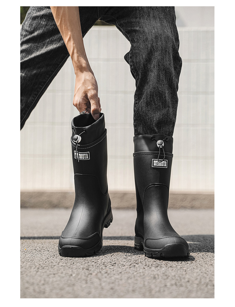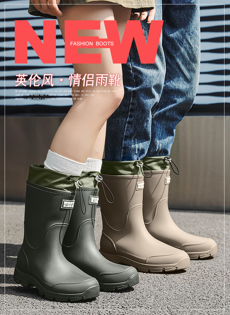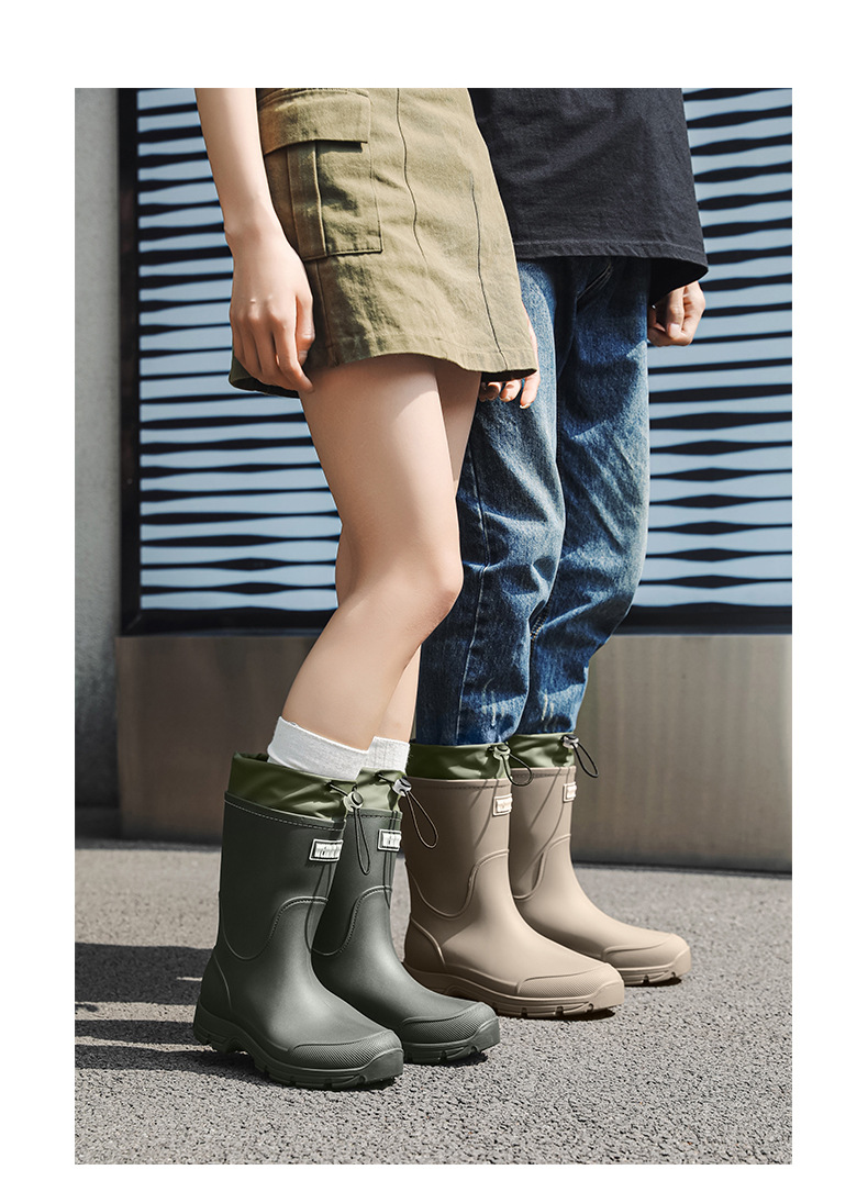 고급 커플용 중목 장화, 조임끈이 있는 방수 장화, 야외용 두꺼운 밑창 워터슈즈, 미끄럼 방지 주방용 두꺼운 밑창 고무신스토어 가기