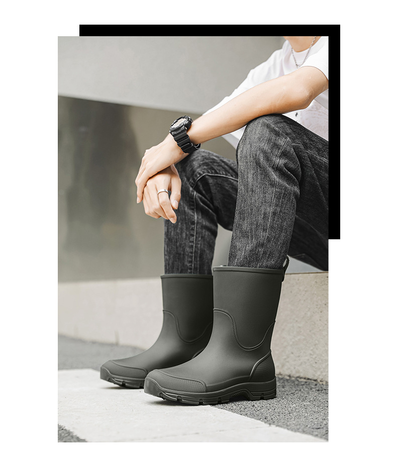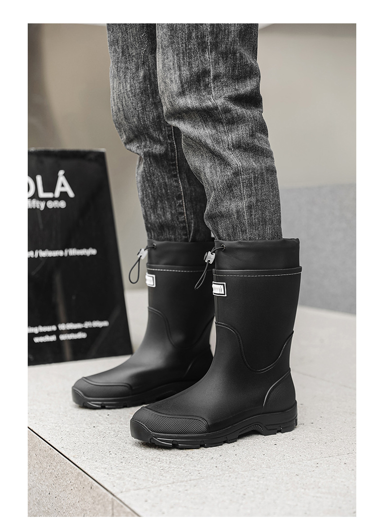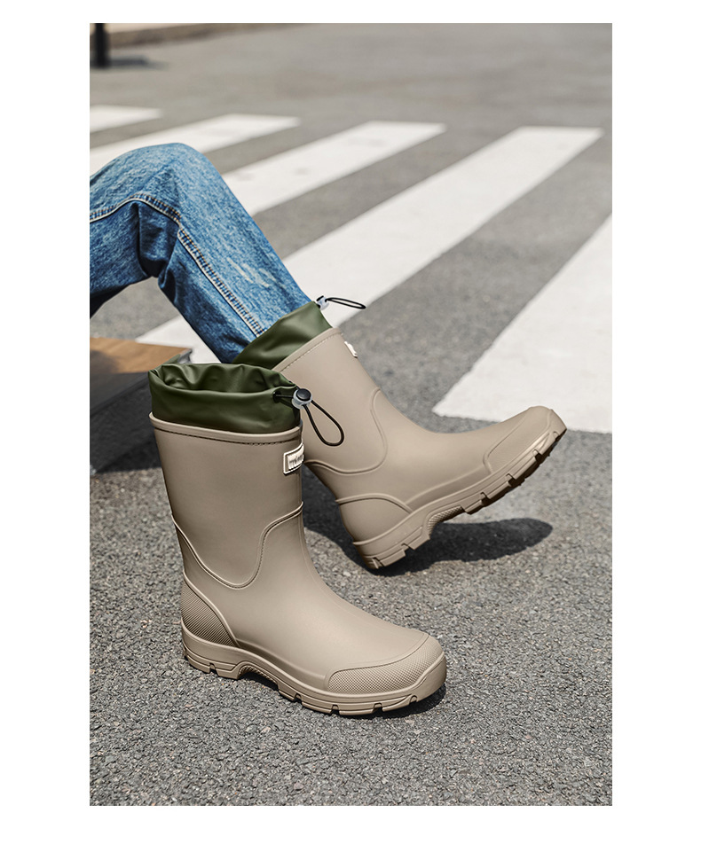 고급 커플용 중목 장화, 조임끈이 있는 방수 장화, 야외용 두꺼운 밑창 워터슈즈, 미끄럼 방지 주방용 두꺼운 밑창 고무신