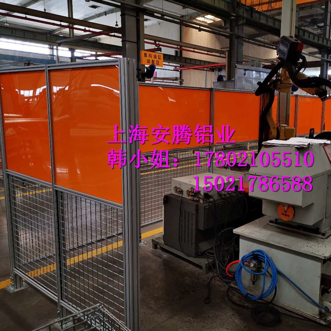 上海安腾铝业韩小姐 专业承接汽车生产流水线安全围栏,机器人弧焊房,机器人打磨房等工业防护项目::工业铝型材框架安全围栏,机器人弧焊房案例展示: