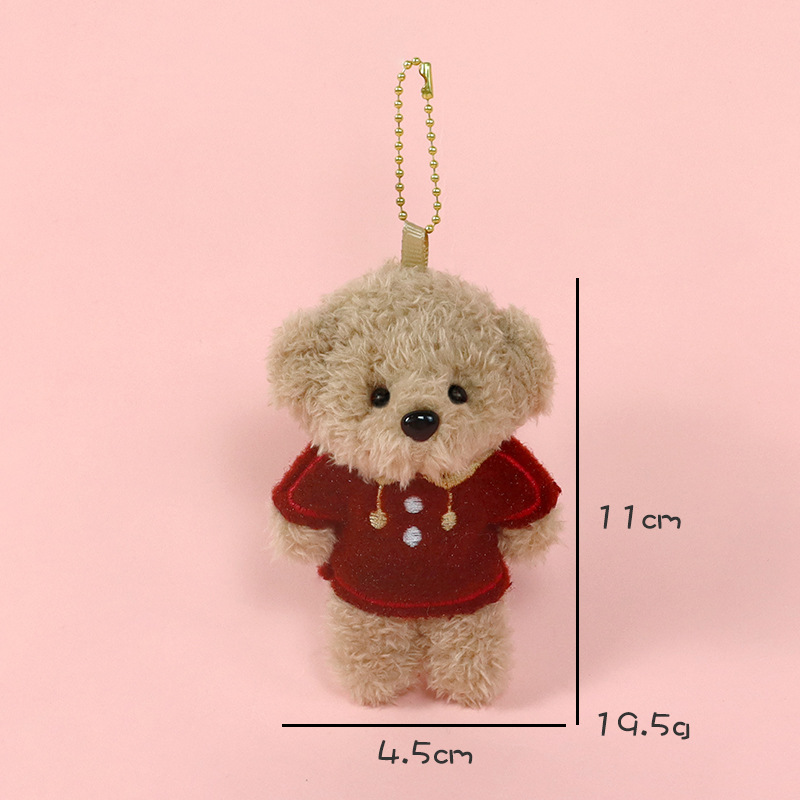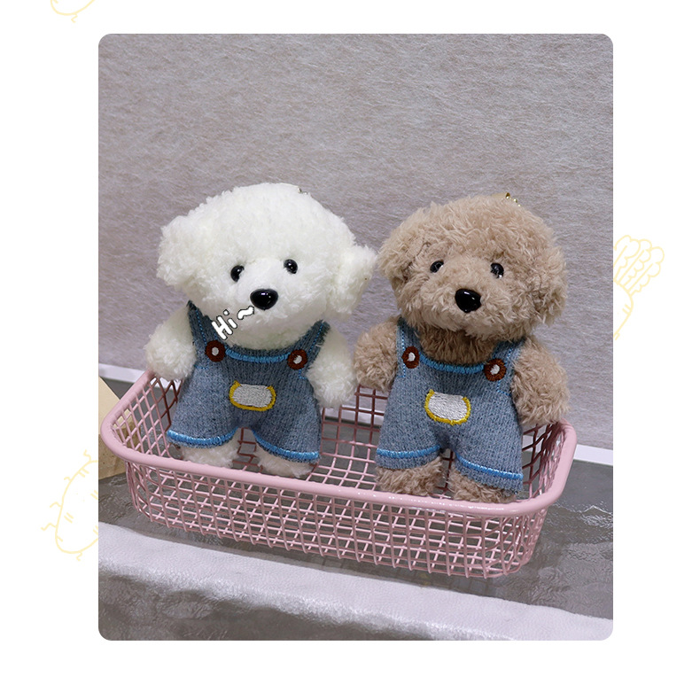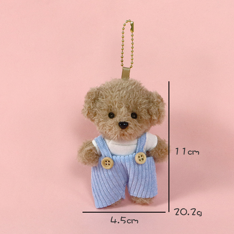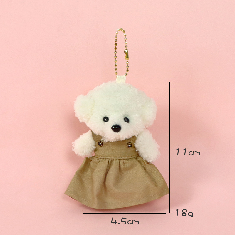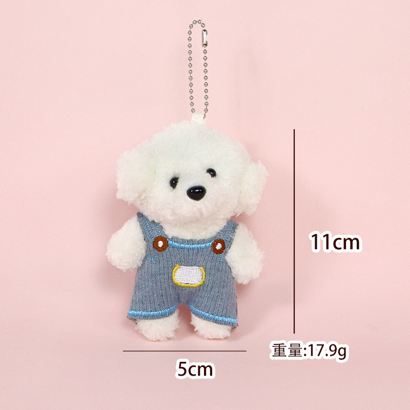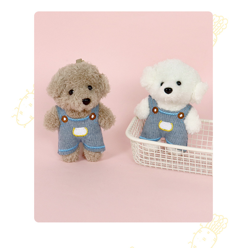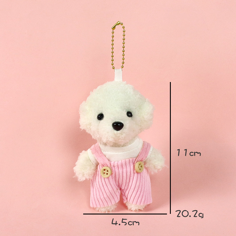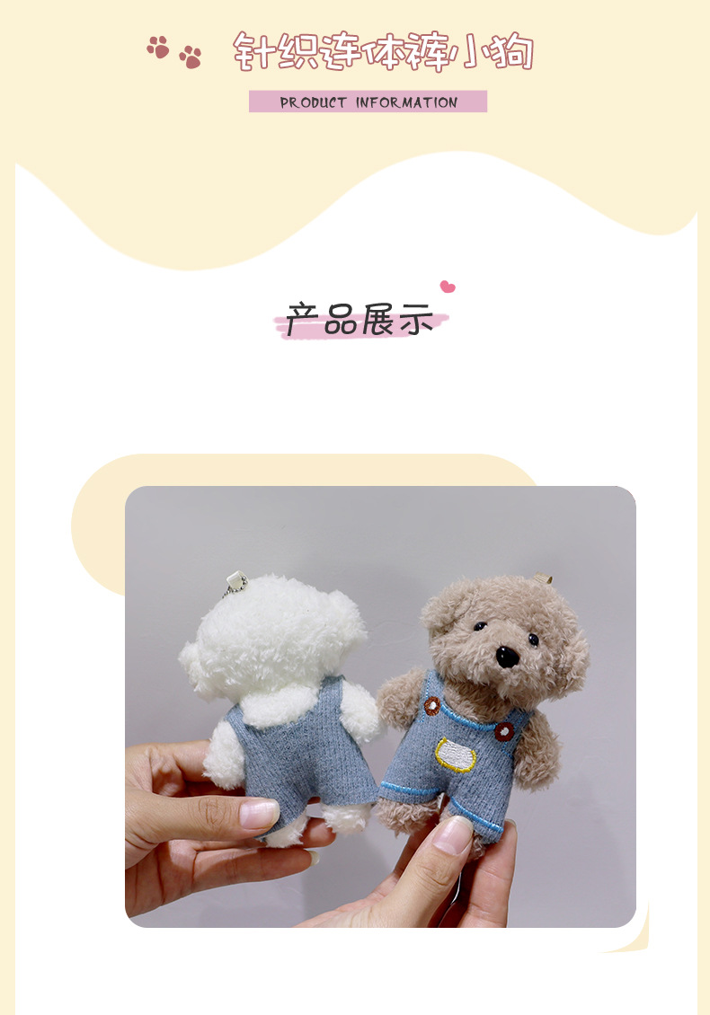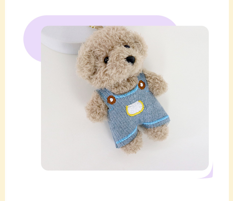 귀여운 점프수트, 강아지 봉제인형, 귀여운 열쇠고리, 작은 갈색 강아지 인형 펜던트, 의류 가방 장식, 작은 선물
