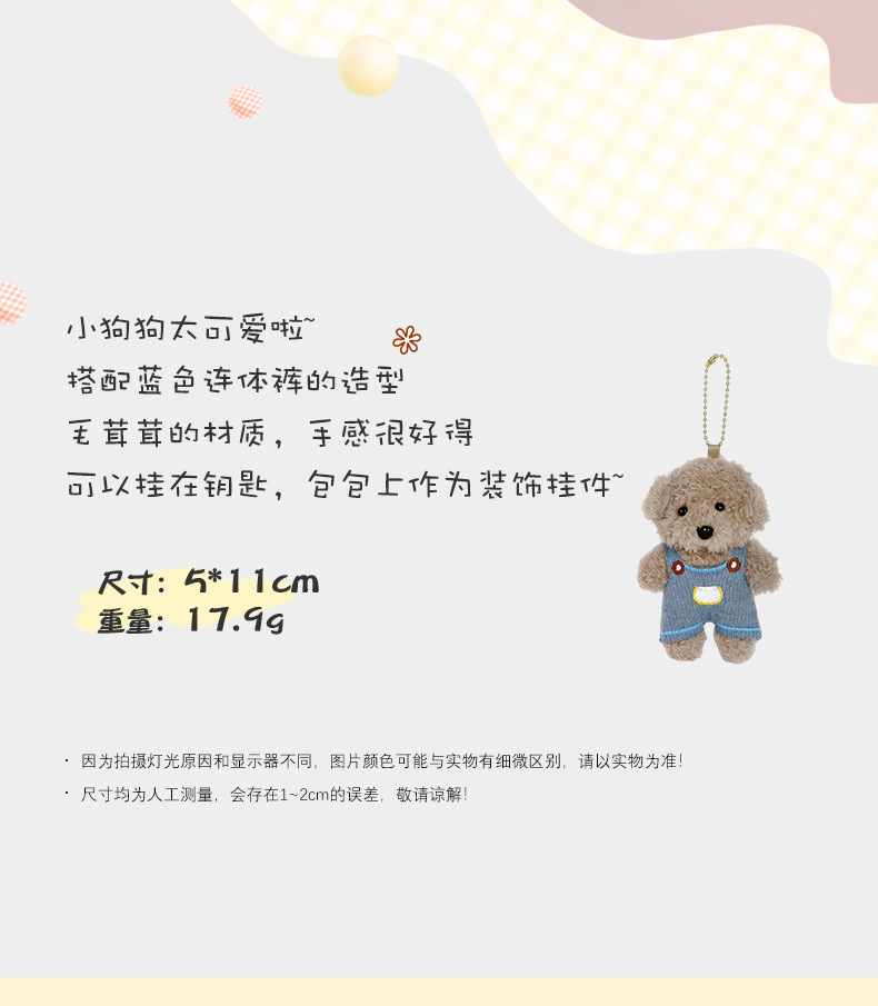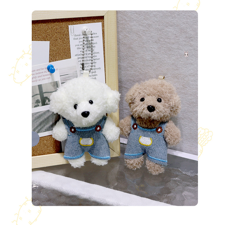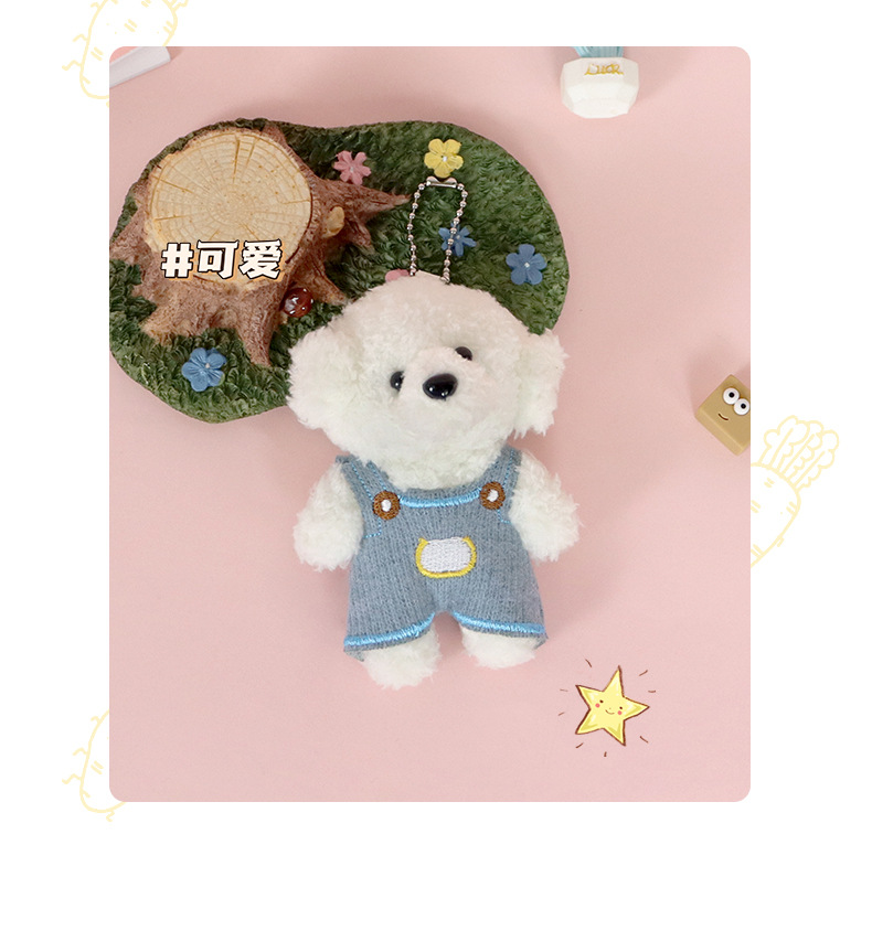 귀여운 점프수트, 강아지 봉제인형, 귀여운 열쇠고리, 작은 갈색 강아지 인형 펜던트, 의류 가방 장식, 작은 선물스토어 가기