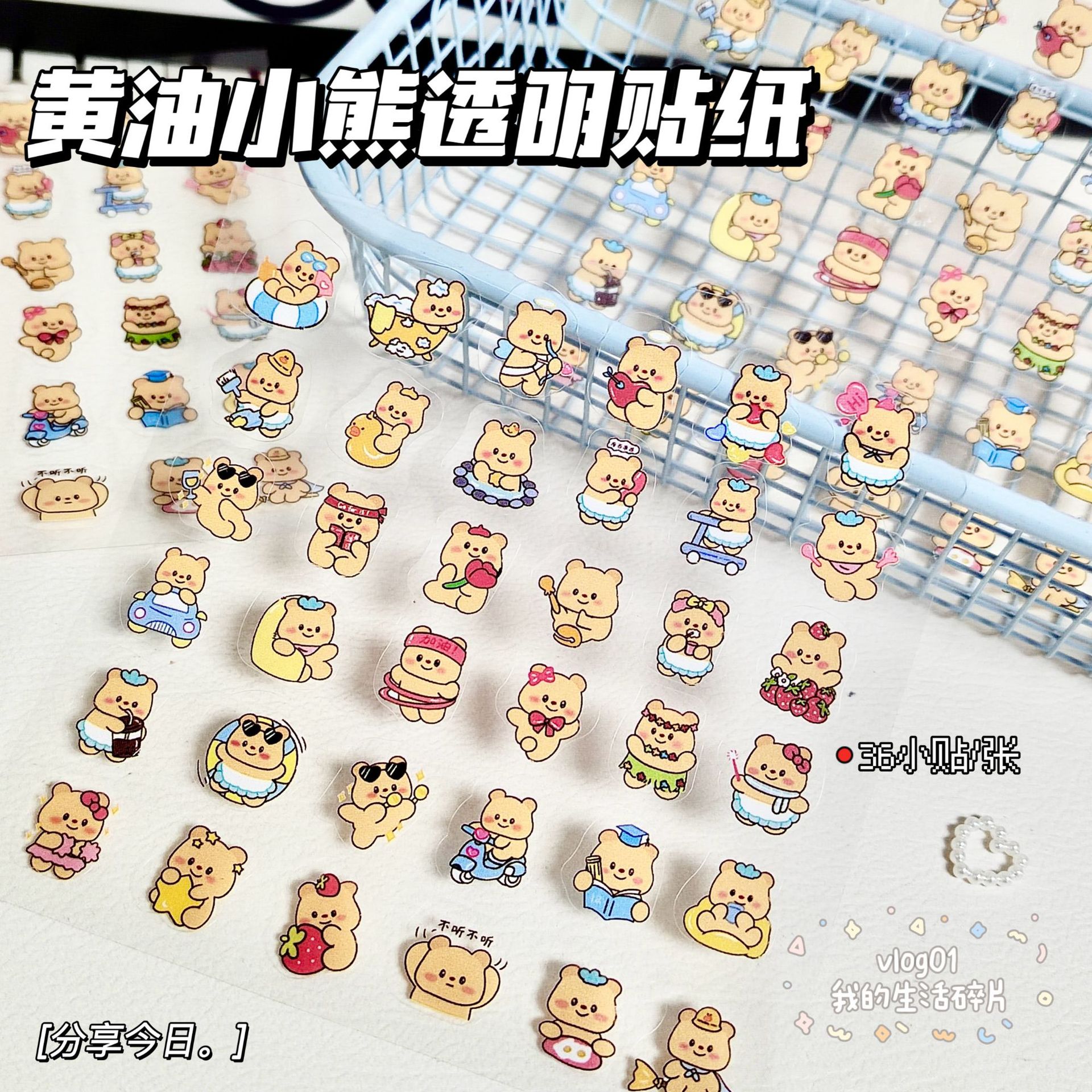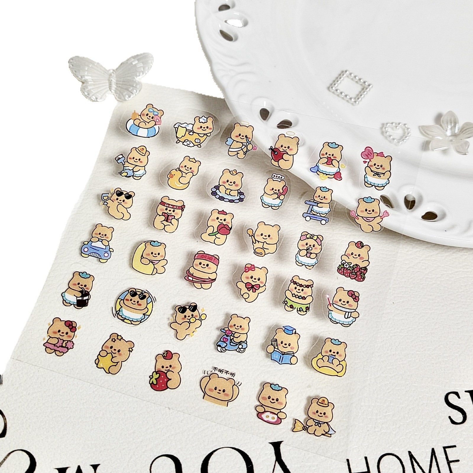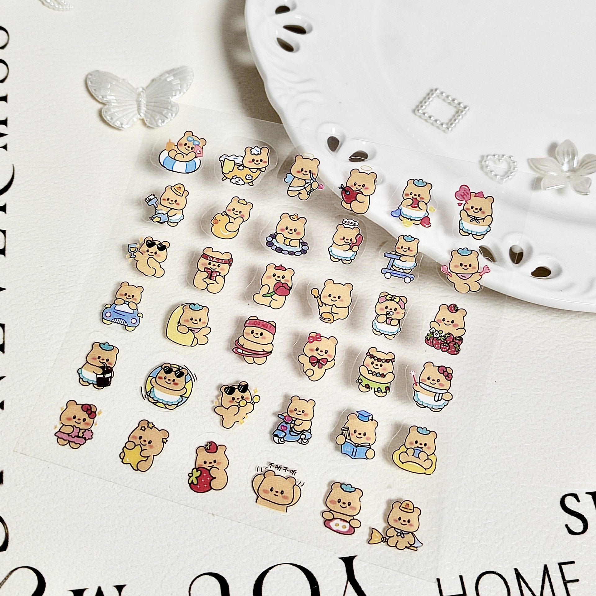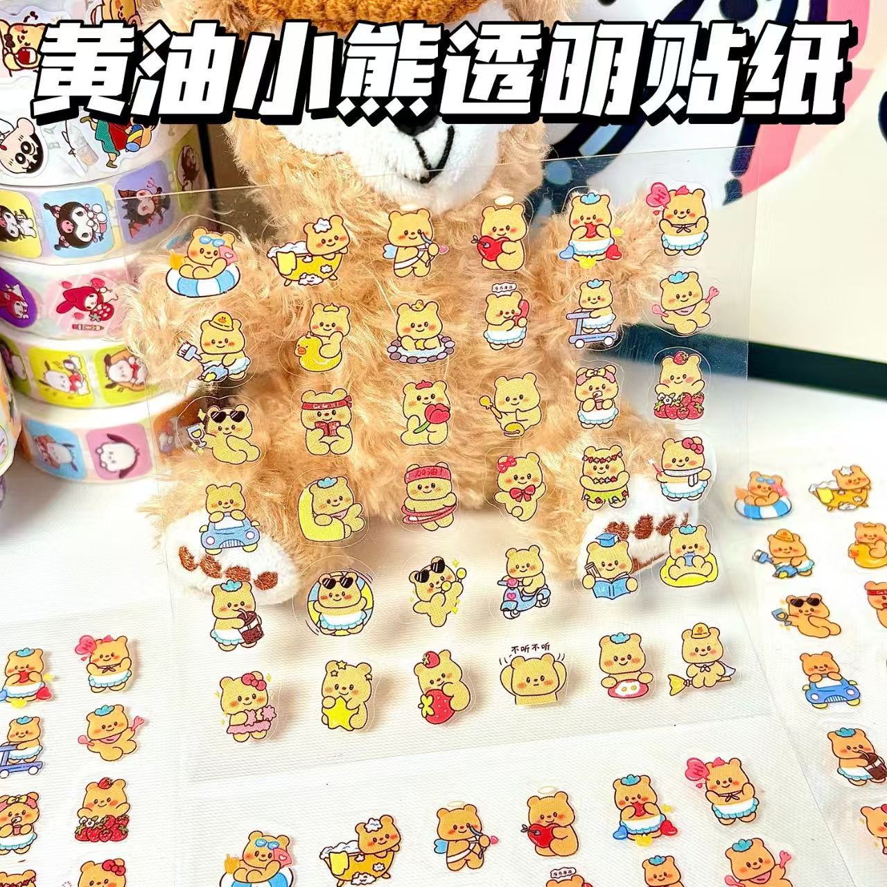버터 베어 핸드북 소재 스티커 어린이 만화 스티커 애니메이션 투명 물 컵 Guka 스티커 장식