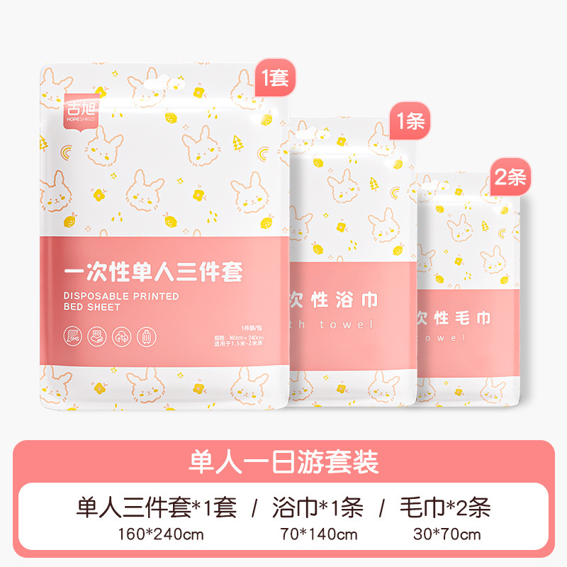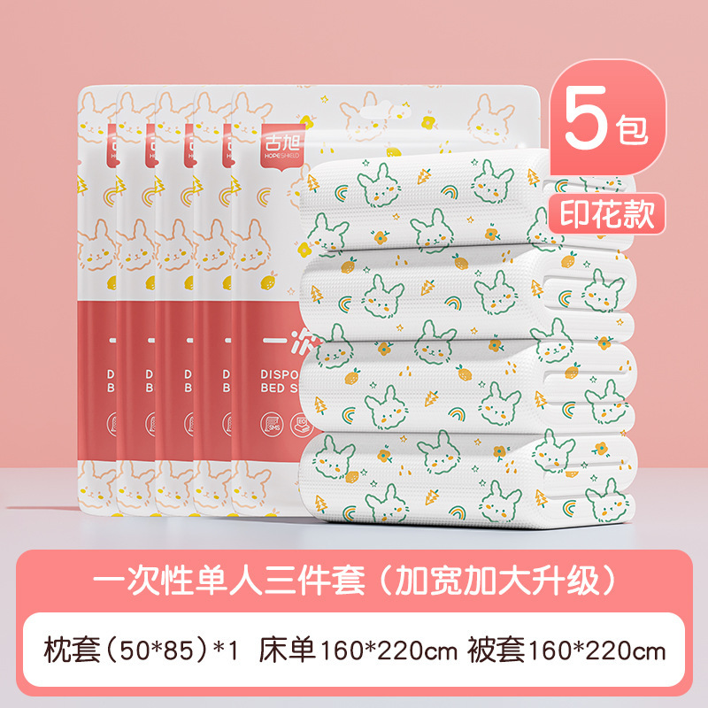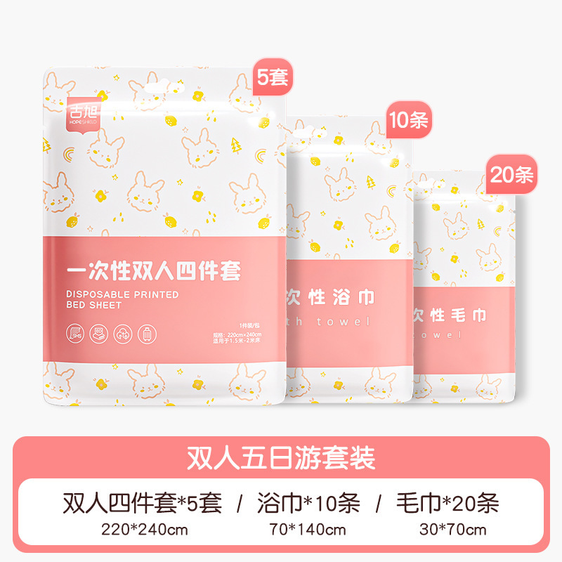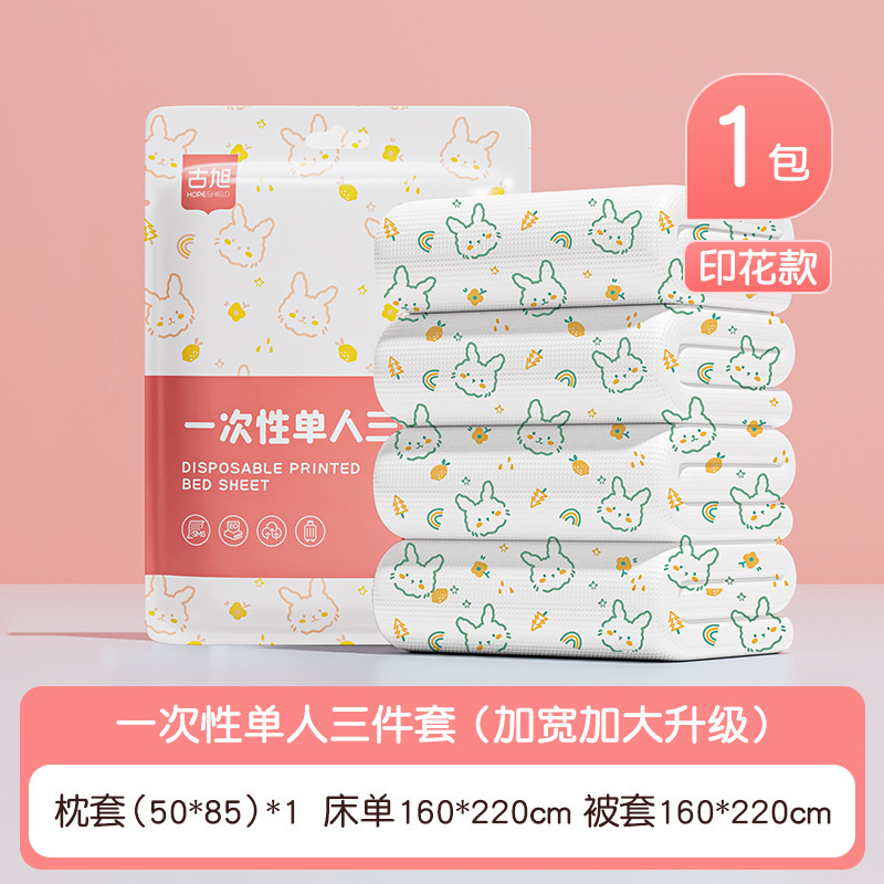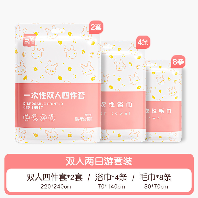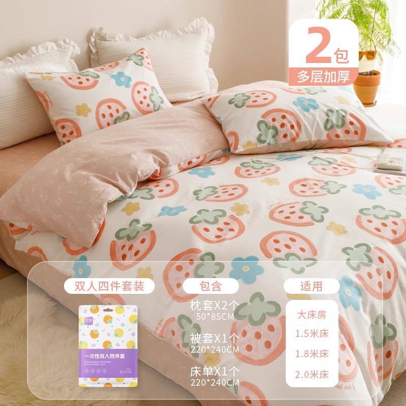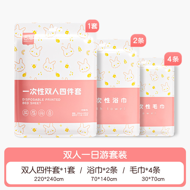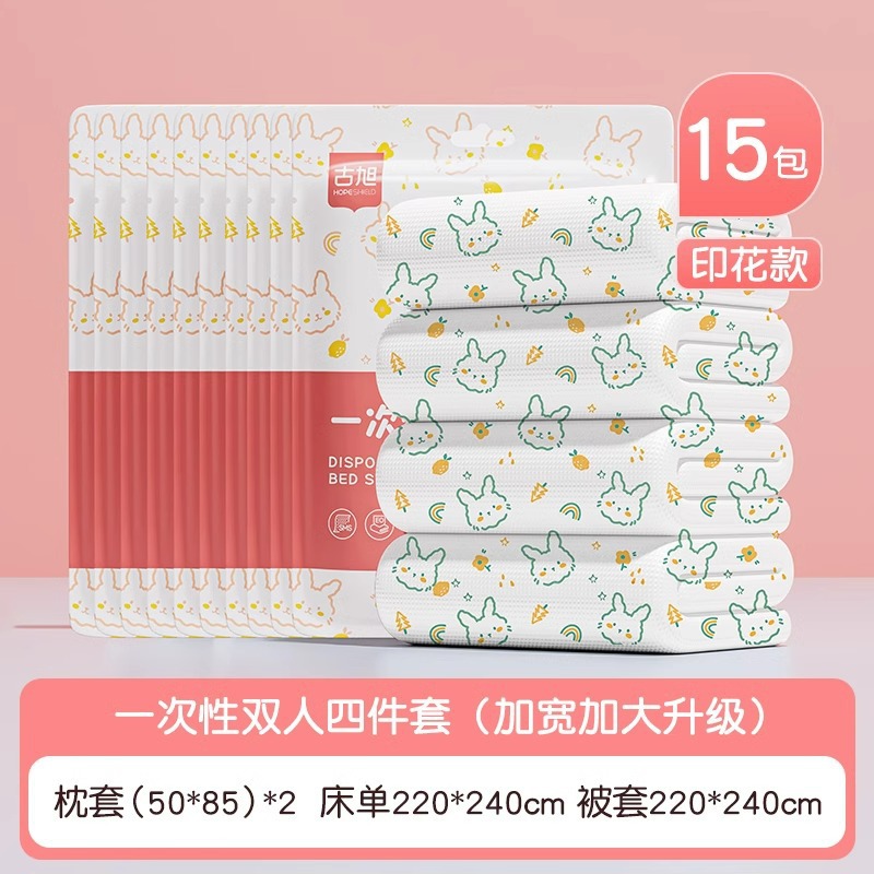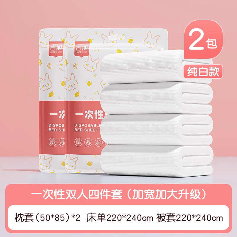호텔 일회용 이불 커버, 침대 시트, 베갯잇, 이불 커버, 4종 세트, 여행용 더블 침구, 더러운 방지 및 두꺼운스토어 가기