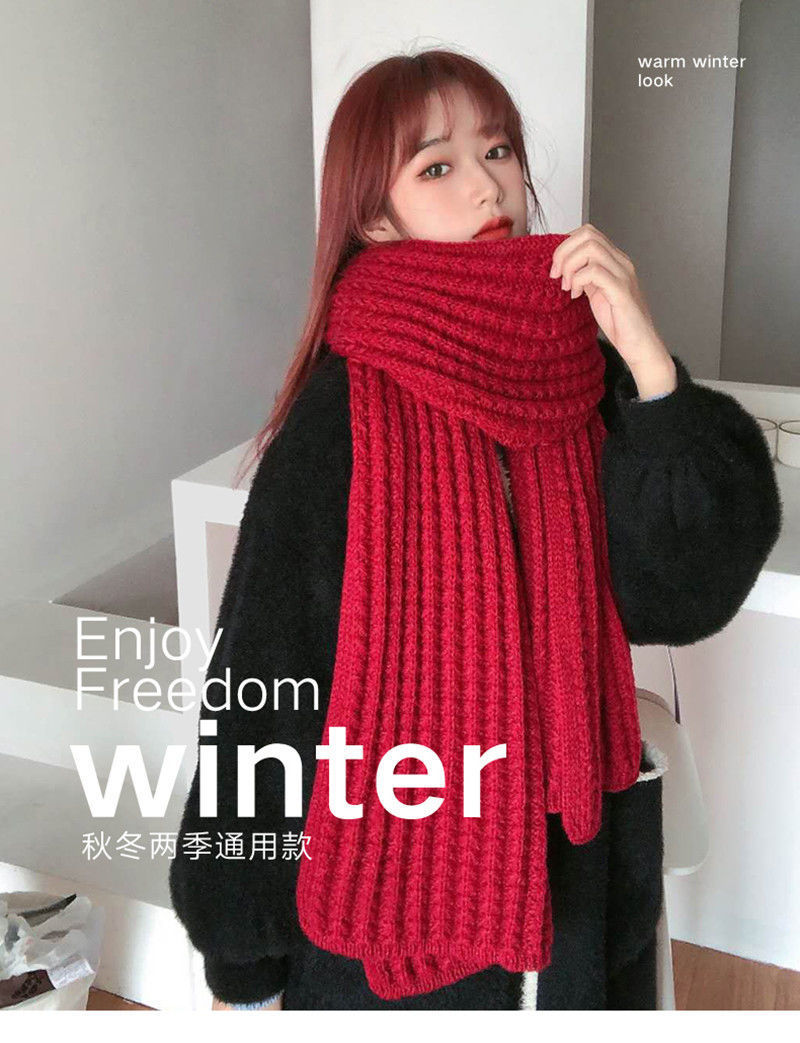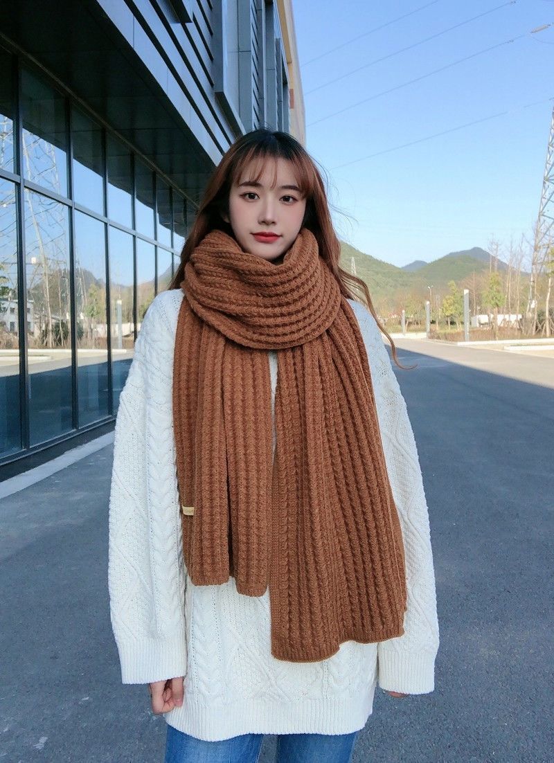 라이브 인터넷 연예인 가을 겨울 여성용 모직 니트 스카프, 단색, 두껍고 따뜻하며 다재다능한 학생 커플 스카프, 남성용 트렌디스토어 가기