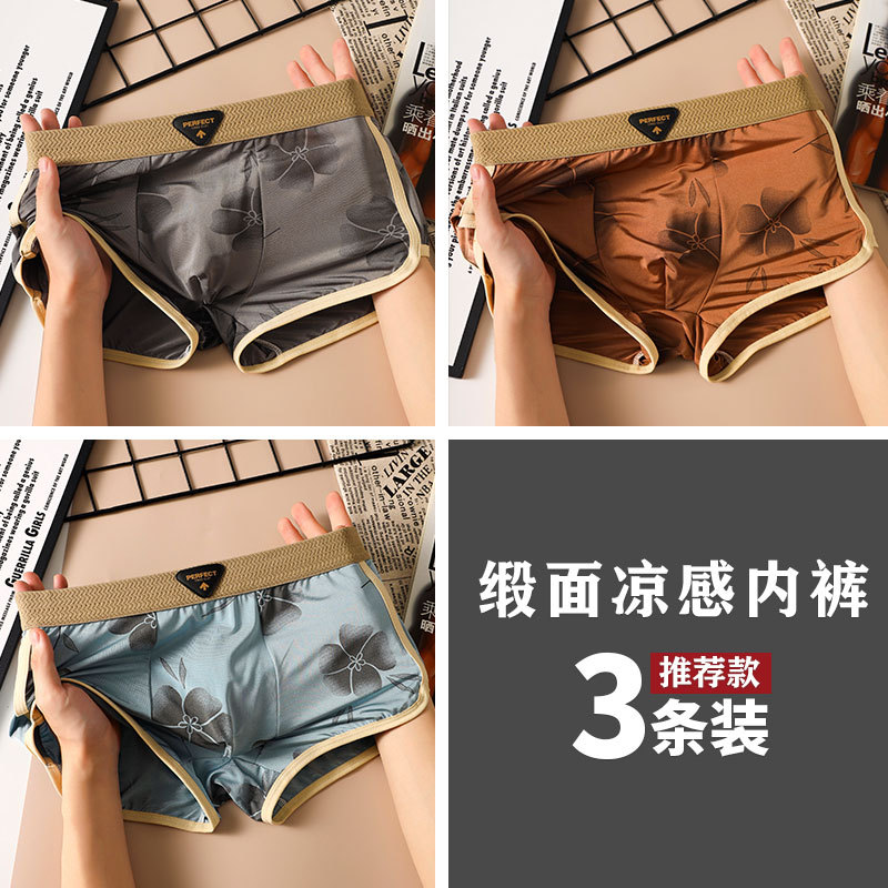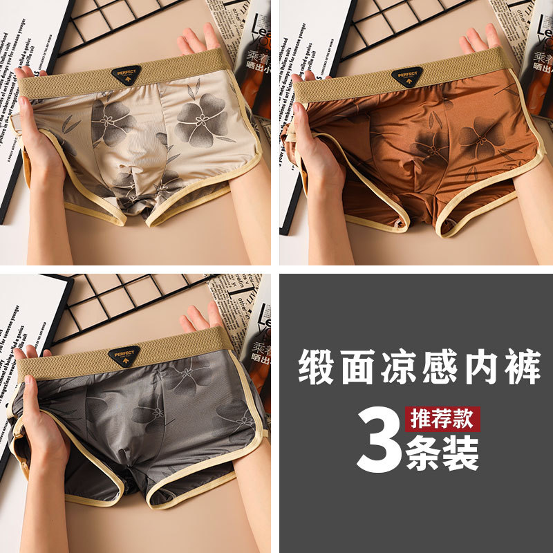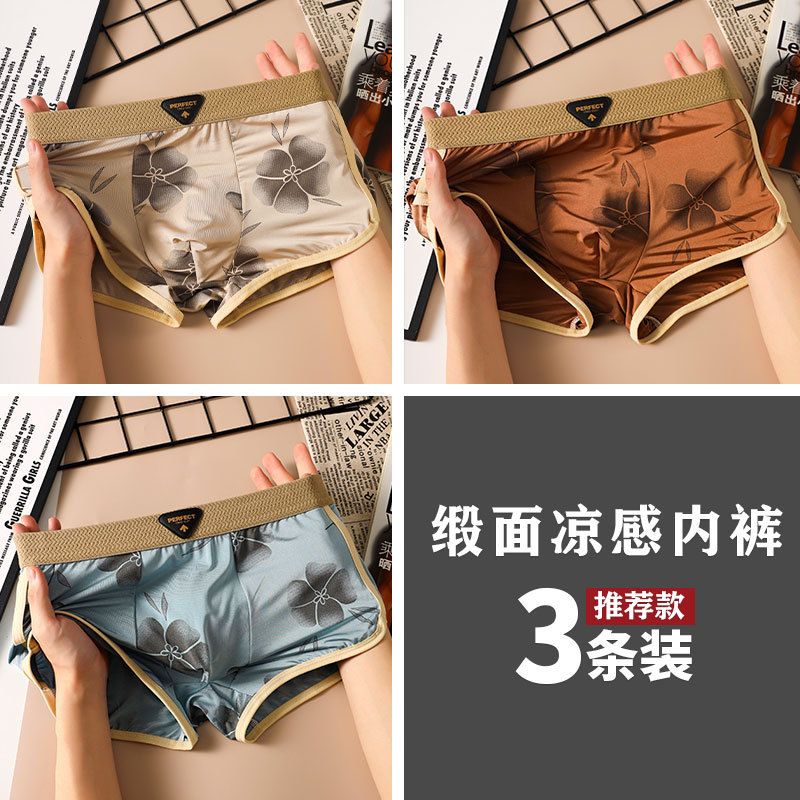 여름 얼음 실크 남자 속옷 꽃 인쇄 중간 허리 편안한 부드러운 스포츠 대형 복서 팬티 남자 복서스토어 가기