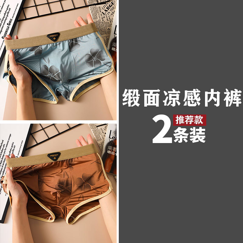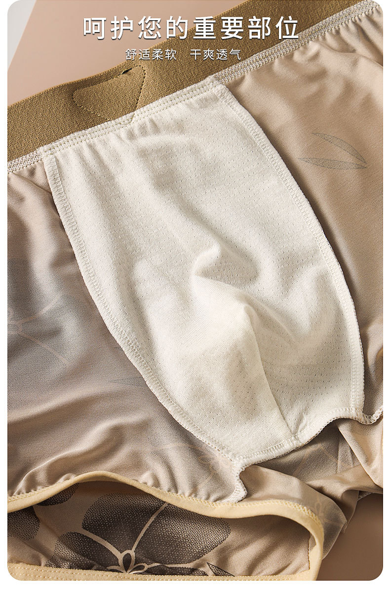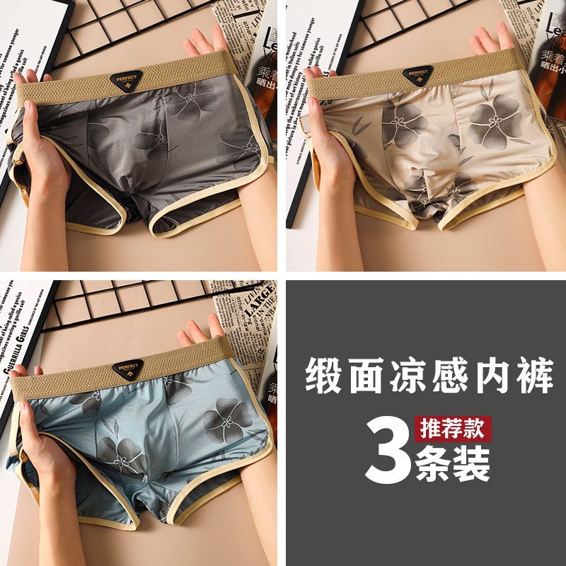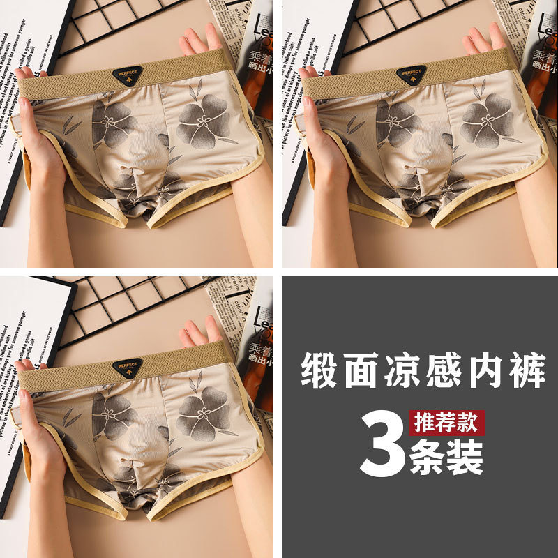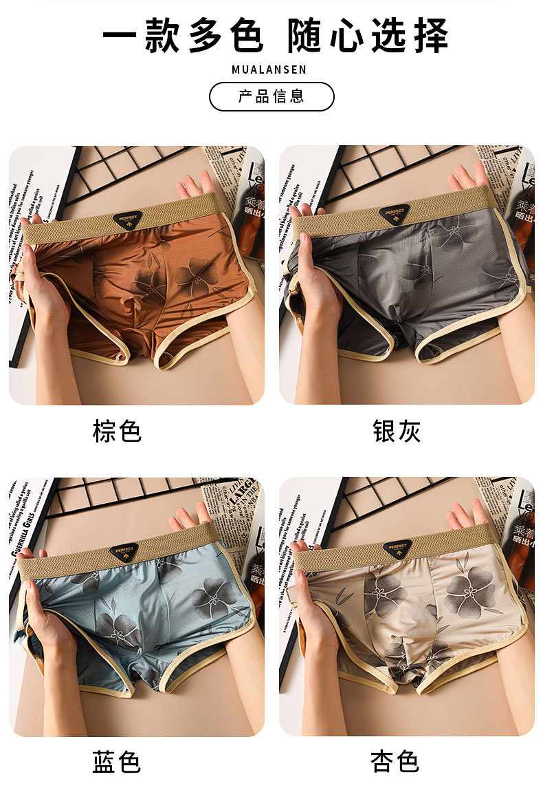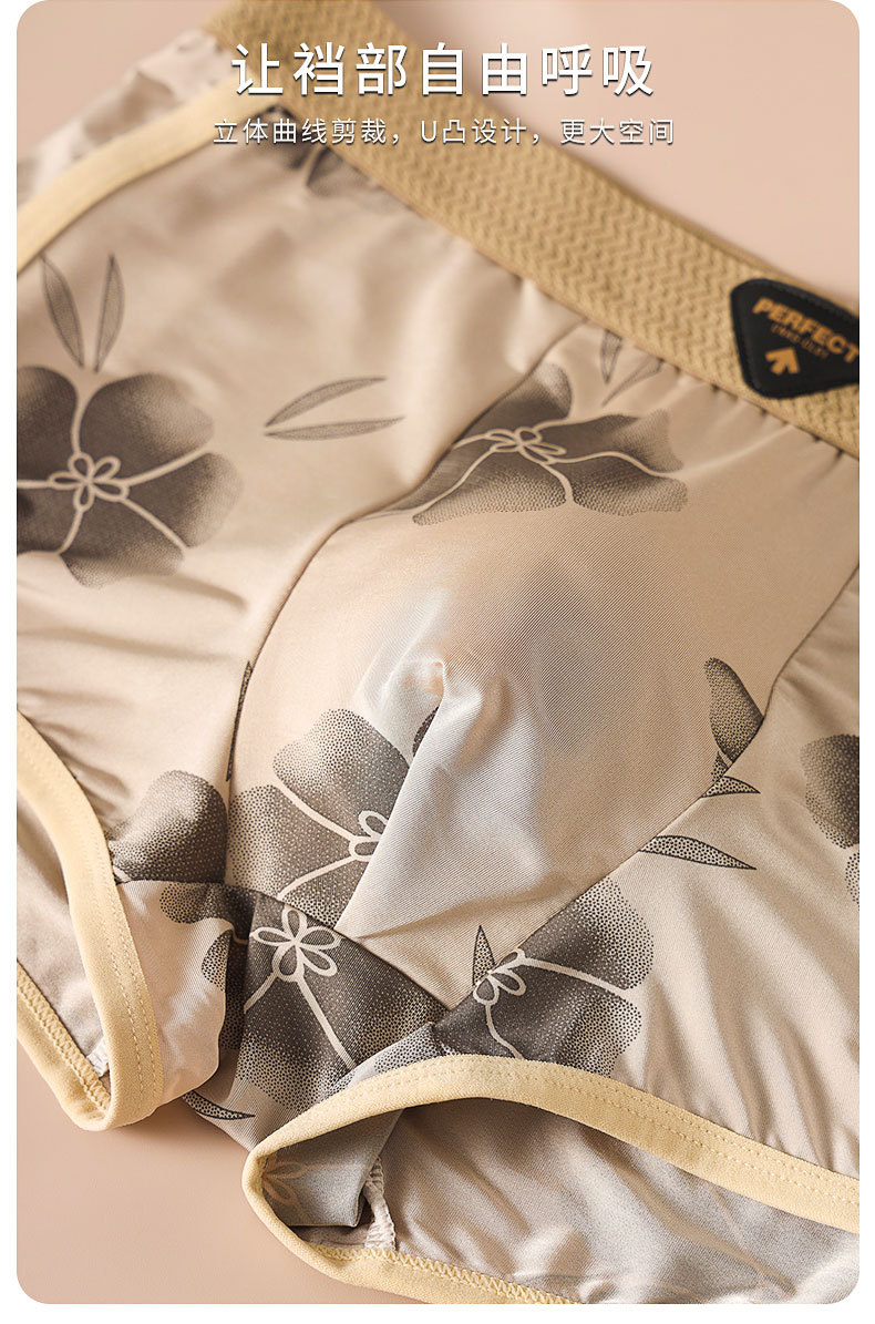 여름 얼음 실크 남자 속옷 꽃 인쇄 중간 허리 편안한 부드러운 스포츠 대형 복서 팬티 남자 복서