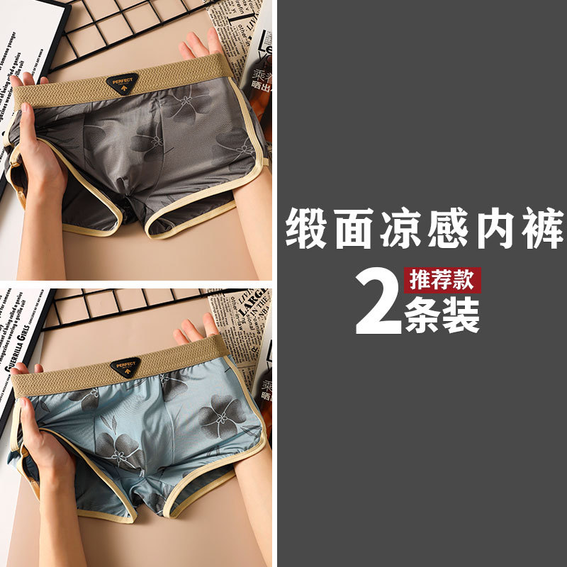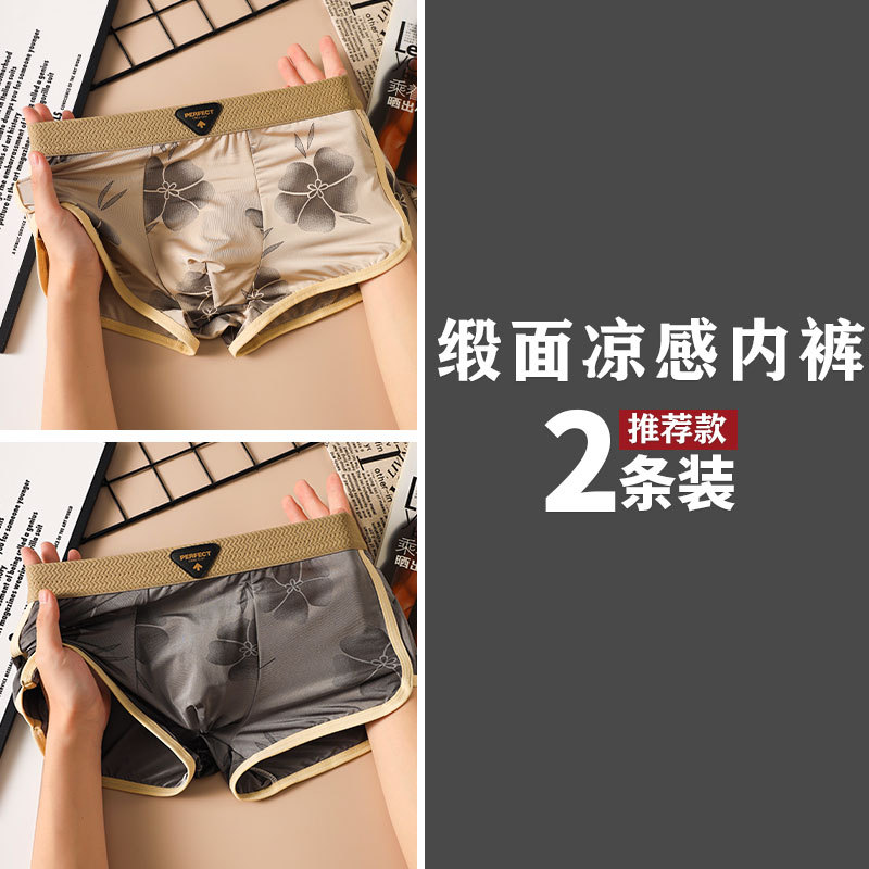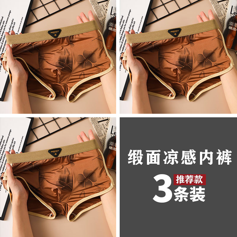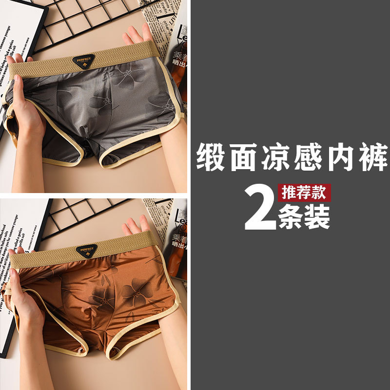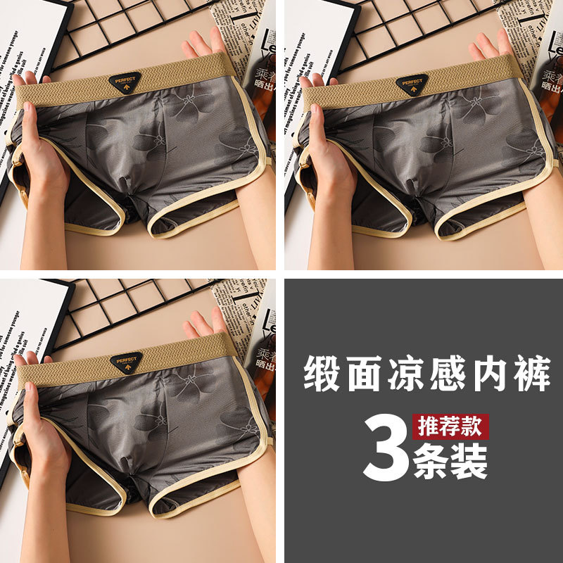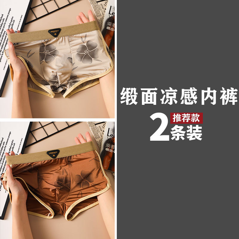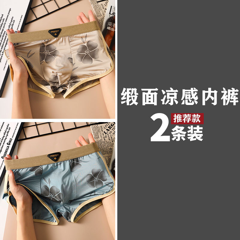 여름 얼음 실크 남자 속옷 꽃 인쇄 중간 허리 편안한 부드러운 스포츠 대형 복서 팬티 남자 복서