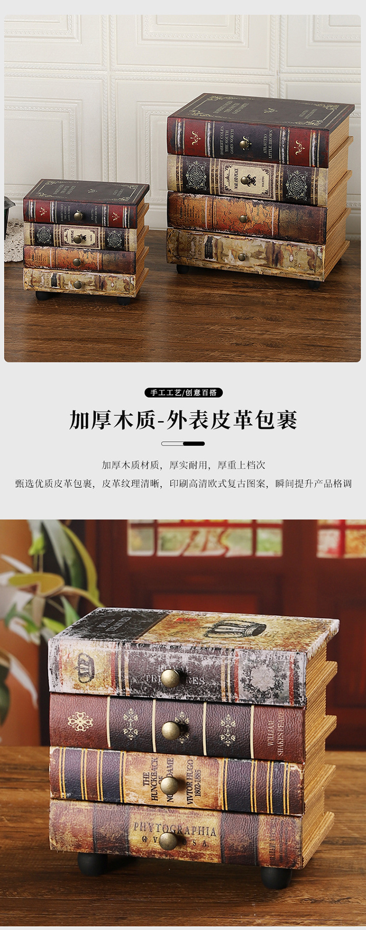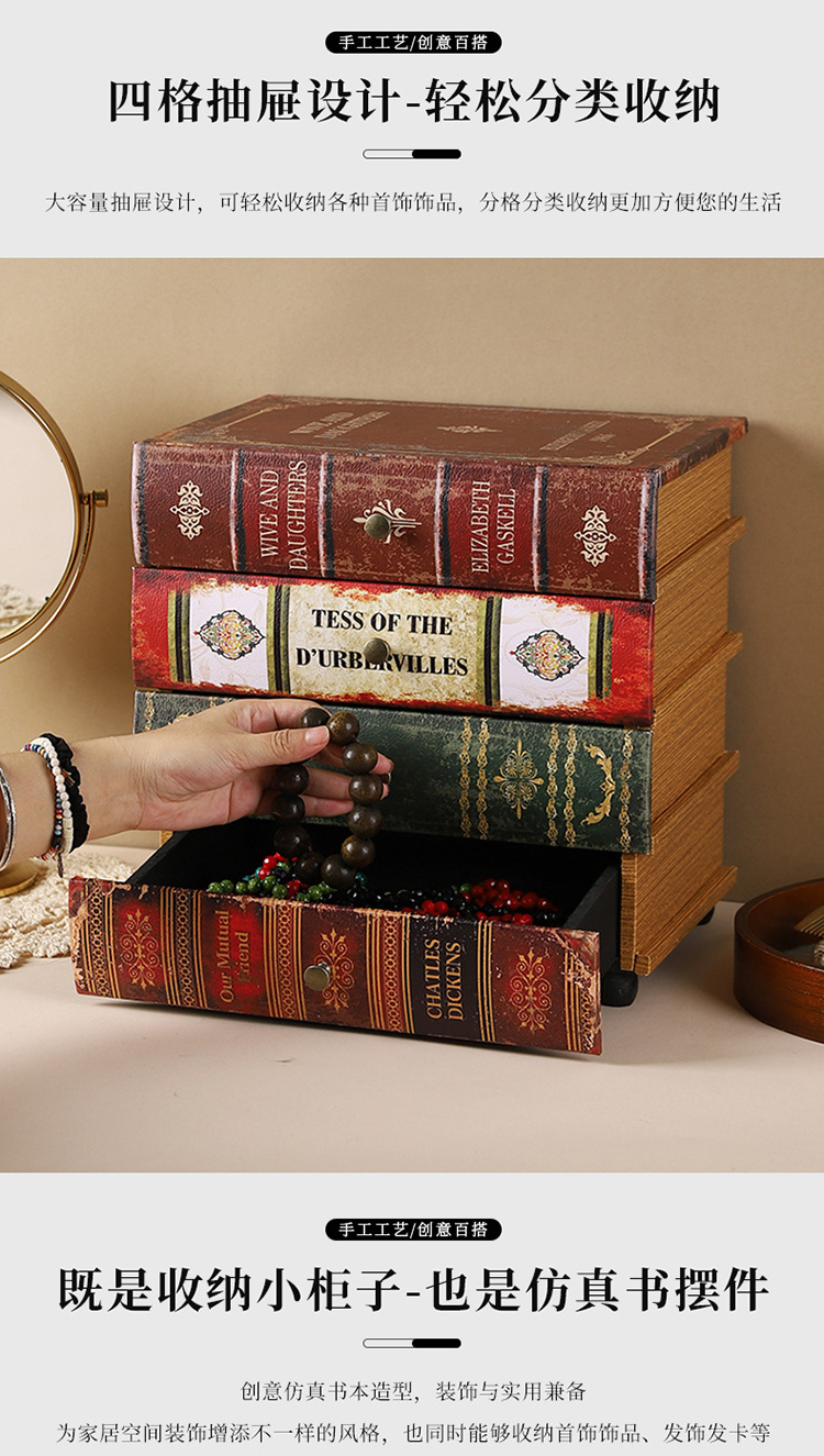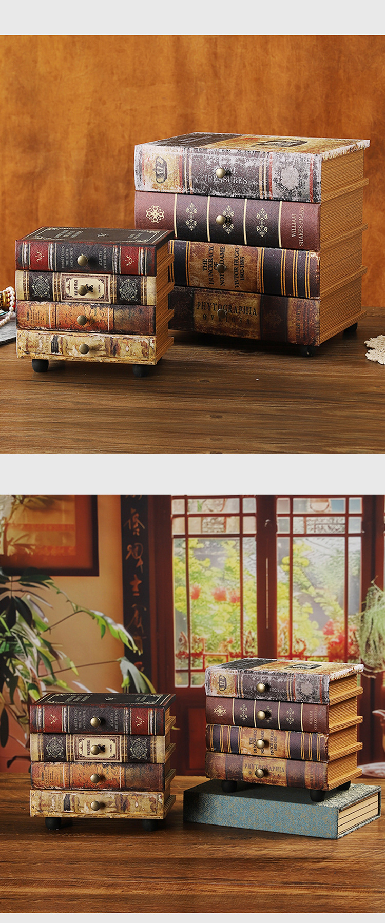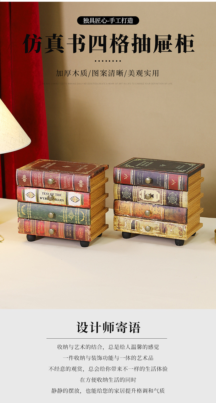 레트로 책 모양의 4 그리드 서랍 상자 시뮬레이션 책 보관 캐비닛 데스크탑 장식품 연구 사무실 장식 공예품스토어 가기