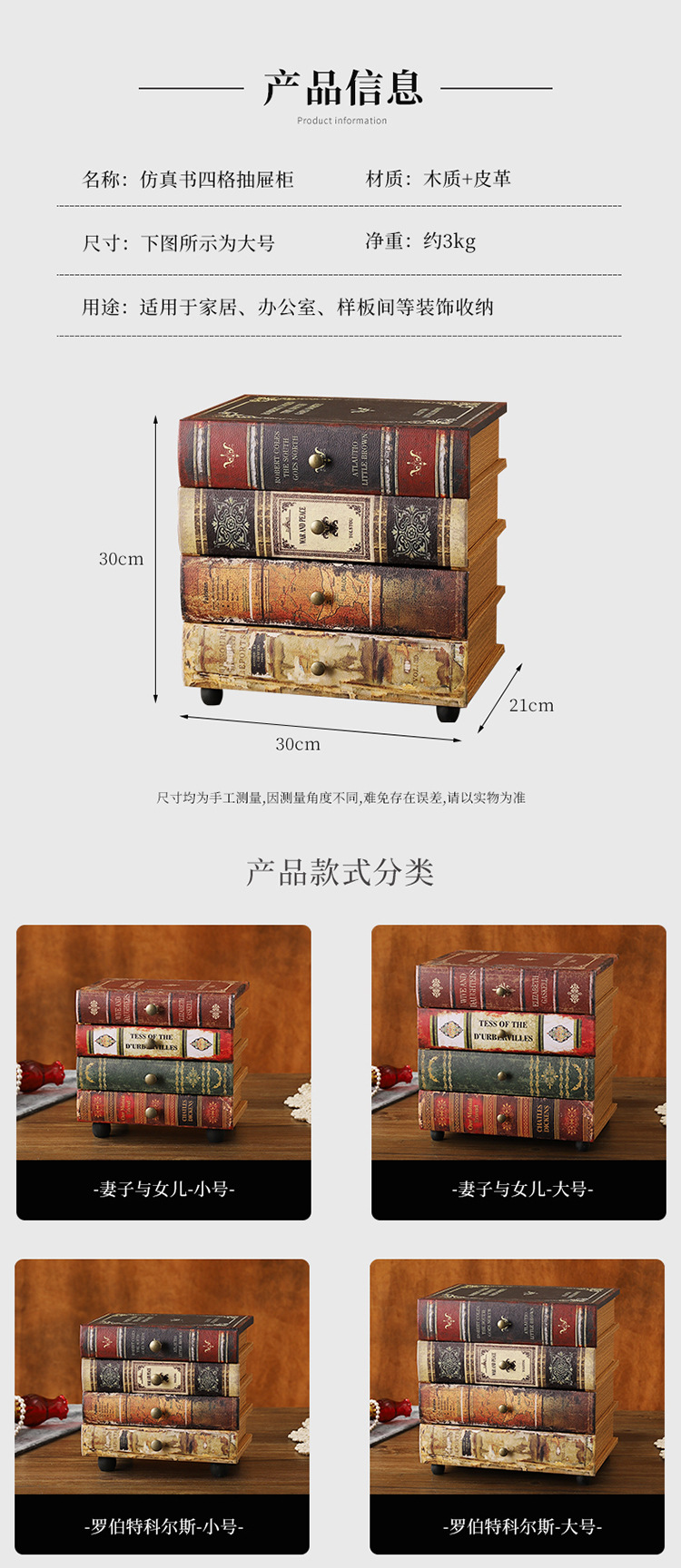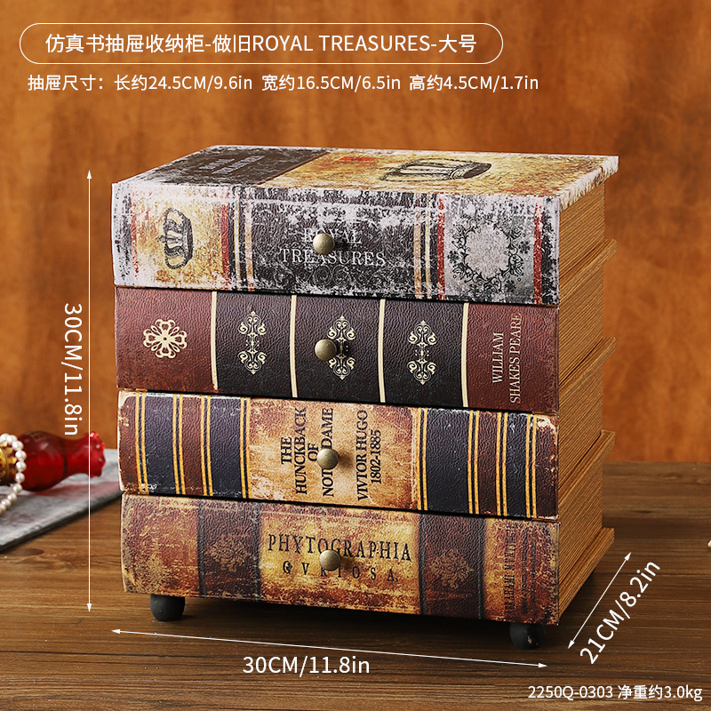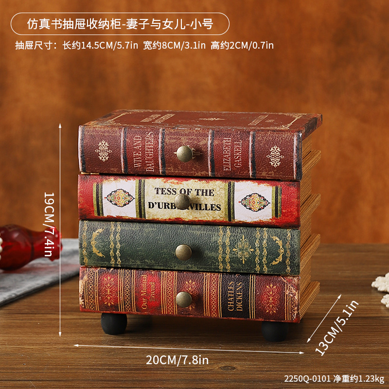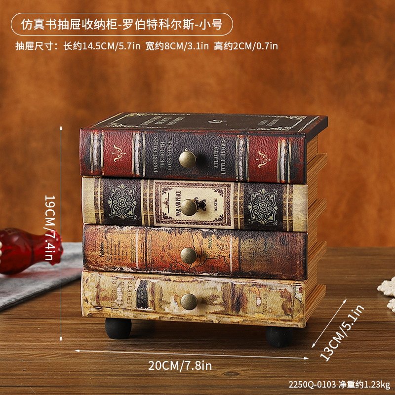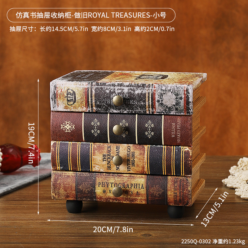레트로 책 모양의 4 그리드 서랍 상자 시뮬레이션 책 보관 캐비닛 데스크탑 장식품 연구 사무실 장식 공예품스토어 가기