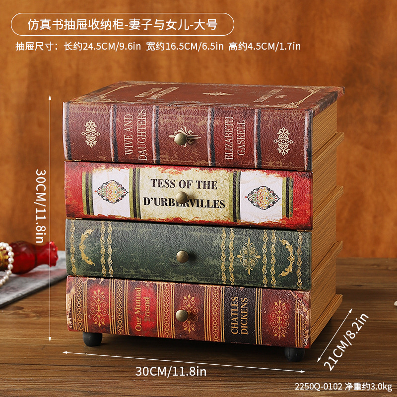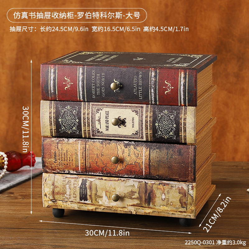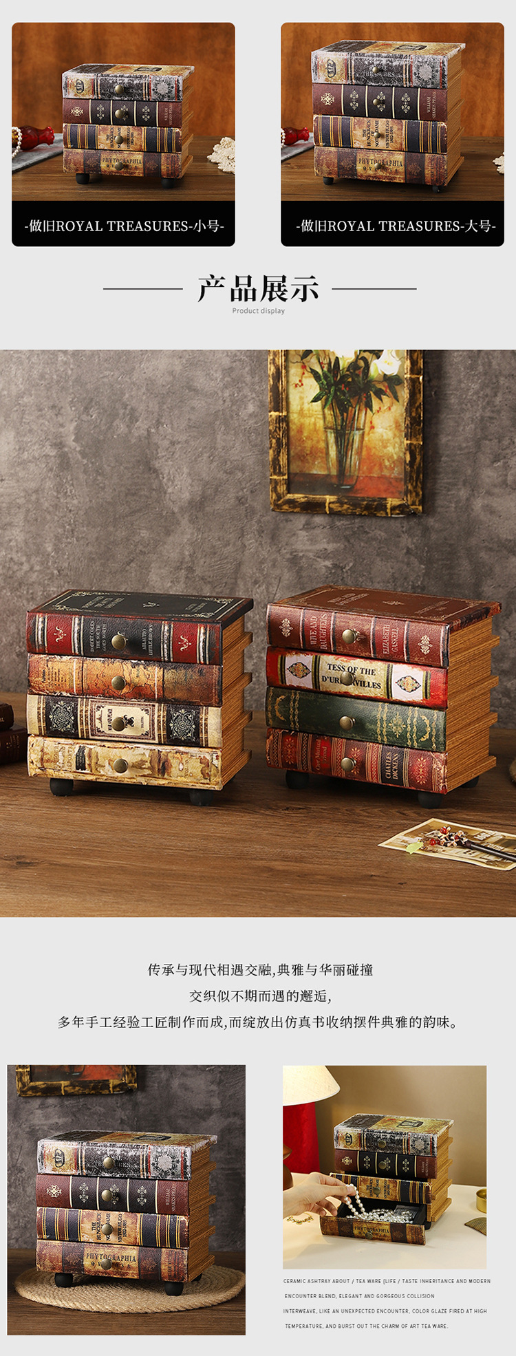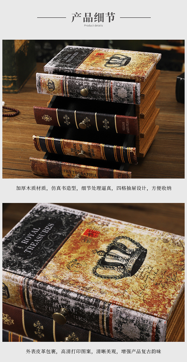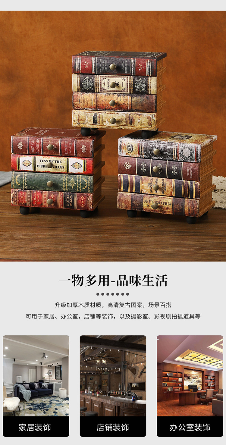 레트로 책 모양의 4 그리드 서랍 상자 시뮬레이션 책 보관 캐비닛 데스크탑 장식품 연구 사무실 장식 공예품스토어 가기