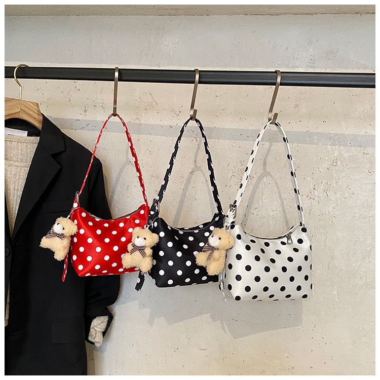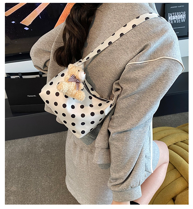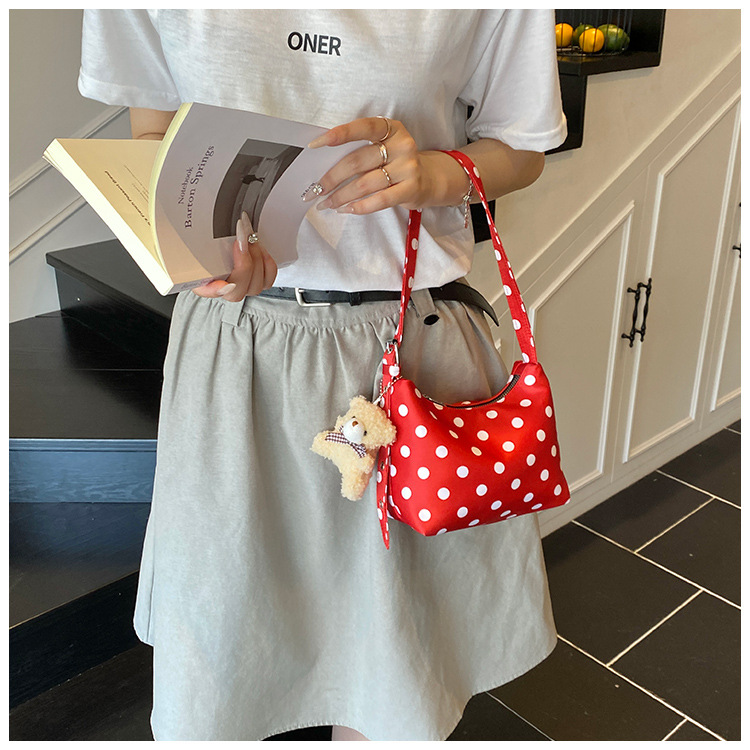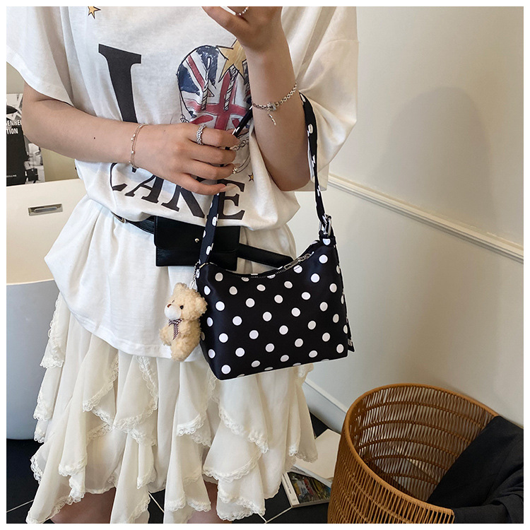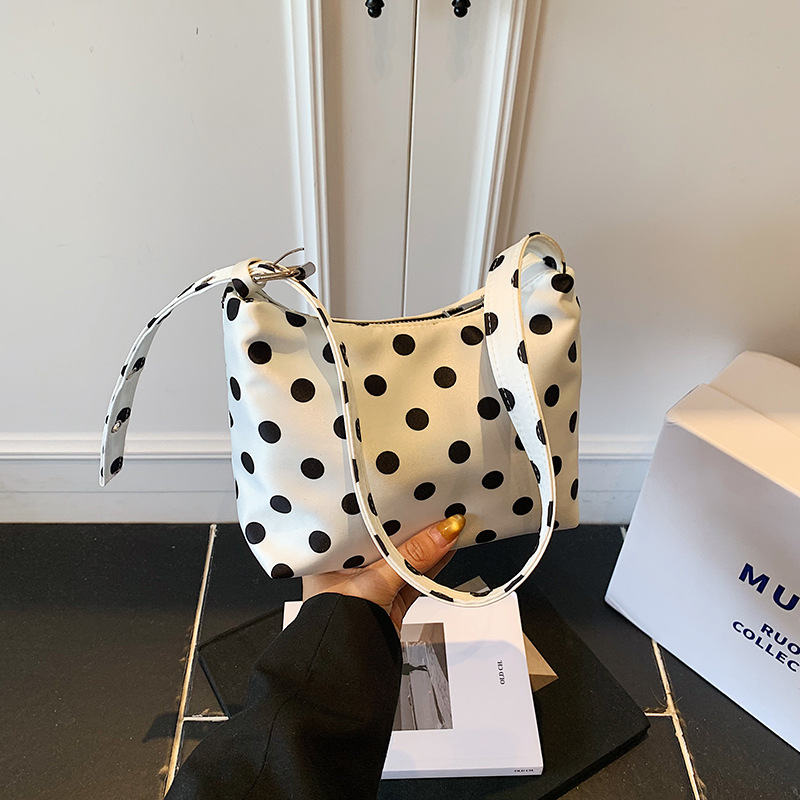 여름 틈새 패션, 고급 폴카 도트 천 가방, 절묘한 외출 겨드랑이 가방, 여성용 다용도 대용량 숄더백