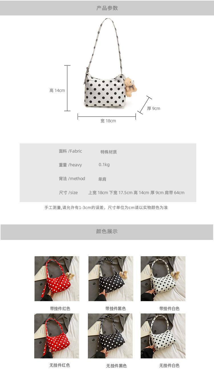 여름 틈새 패션, 고급 폴카 도트 천 가방, 절묘한 외출 겨드랑이 가방, 여성용 다용도 대용량 숄더백스토어 가기