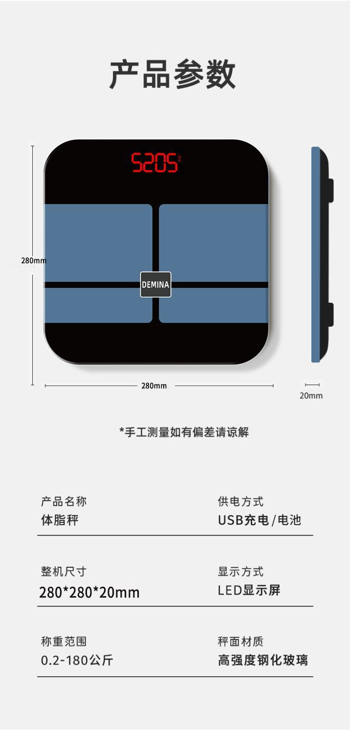 DEMINA 독일 체중계는 가정용으로 정확하며 체중 감량을 위한 두꺼운 전자 저울로 휴대폰에 연결할 수 있습니다. 체지방 측정기