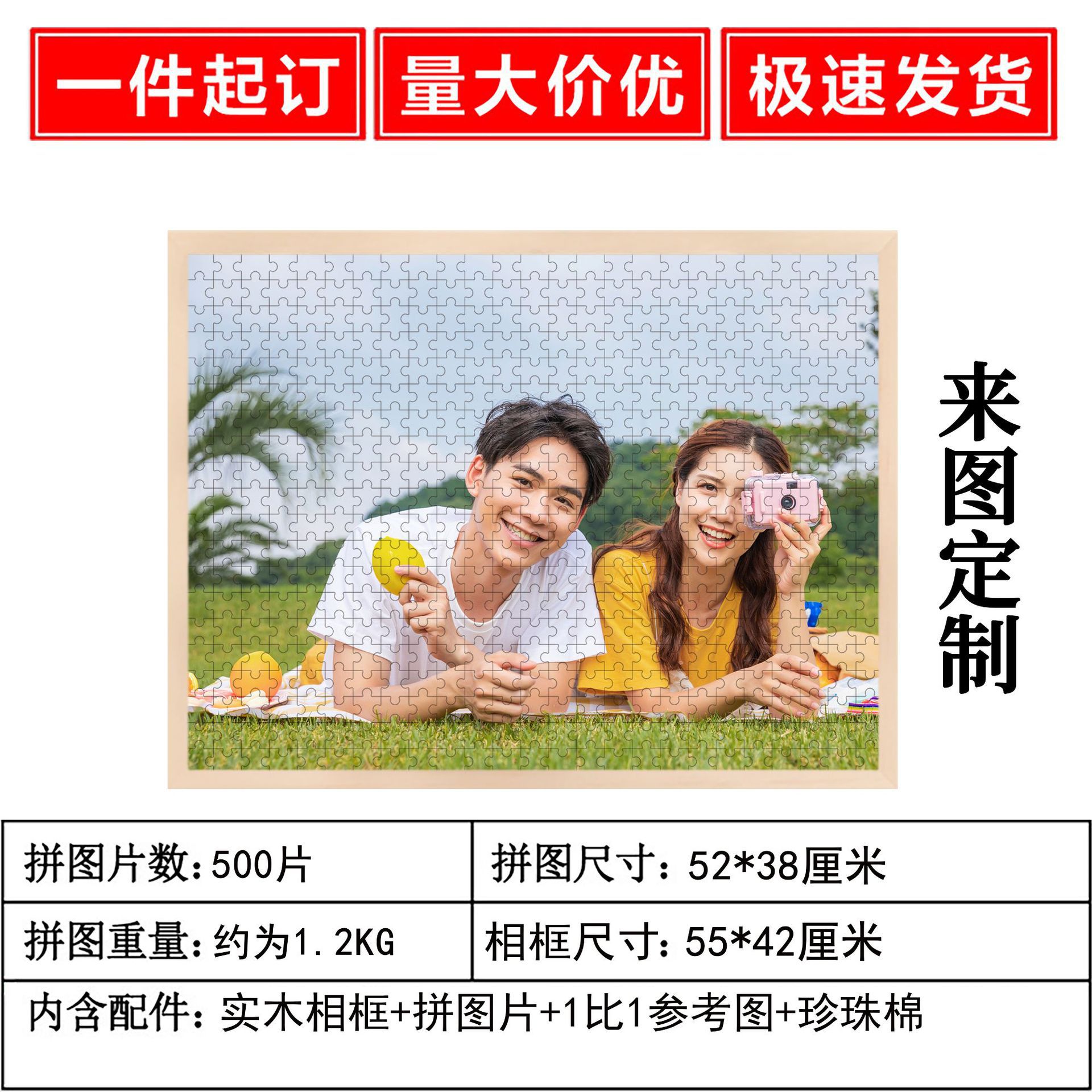 • 사진 프레임이 포함된 블루 카드 맞춤형 500피스 [직사각형] 배송 준비 완료