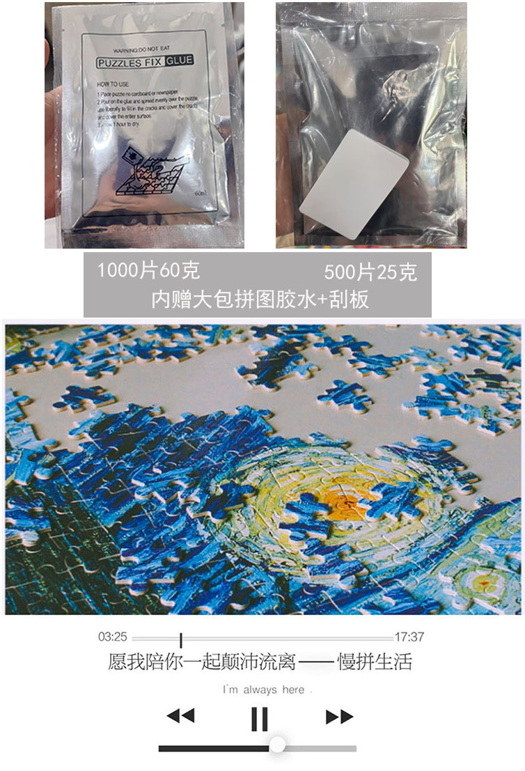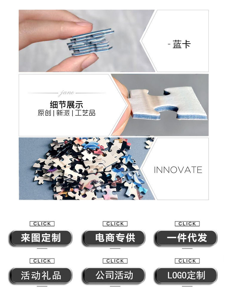 제조업체 맞춤형 퍼즐 로고 선물 1000 조각 블루 카드 성인 및 어린이 장난감 배송 국경 간 대외 무역 도매스토어 가기