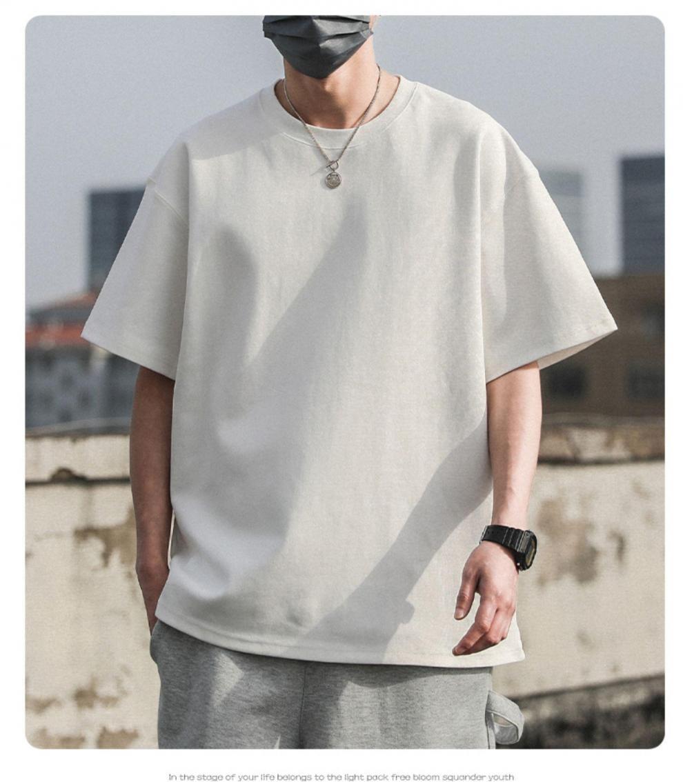 신장 롱 스테이플 코튼 520g 헤비급 코튼 반팔 남성 티셔츠 여성 반팔 여름 솔리드 화이트 루즈 바닥 셔츠