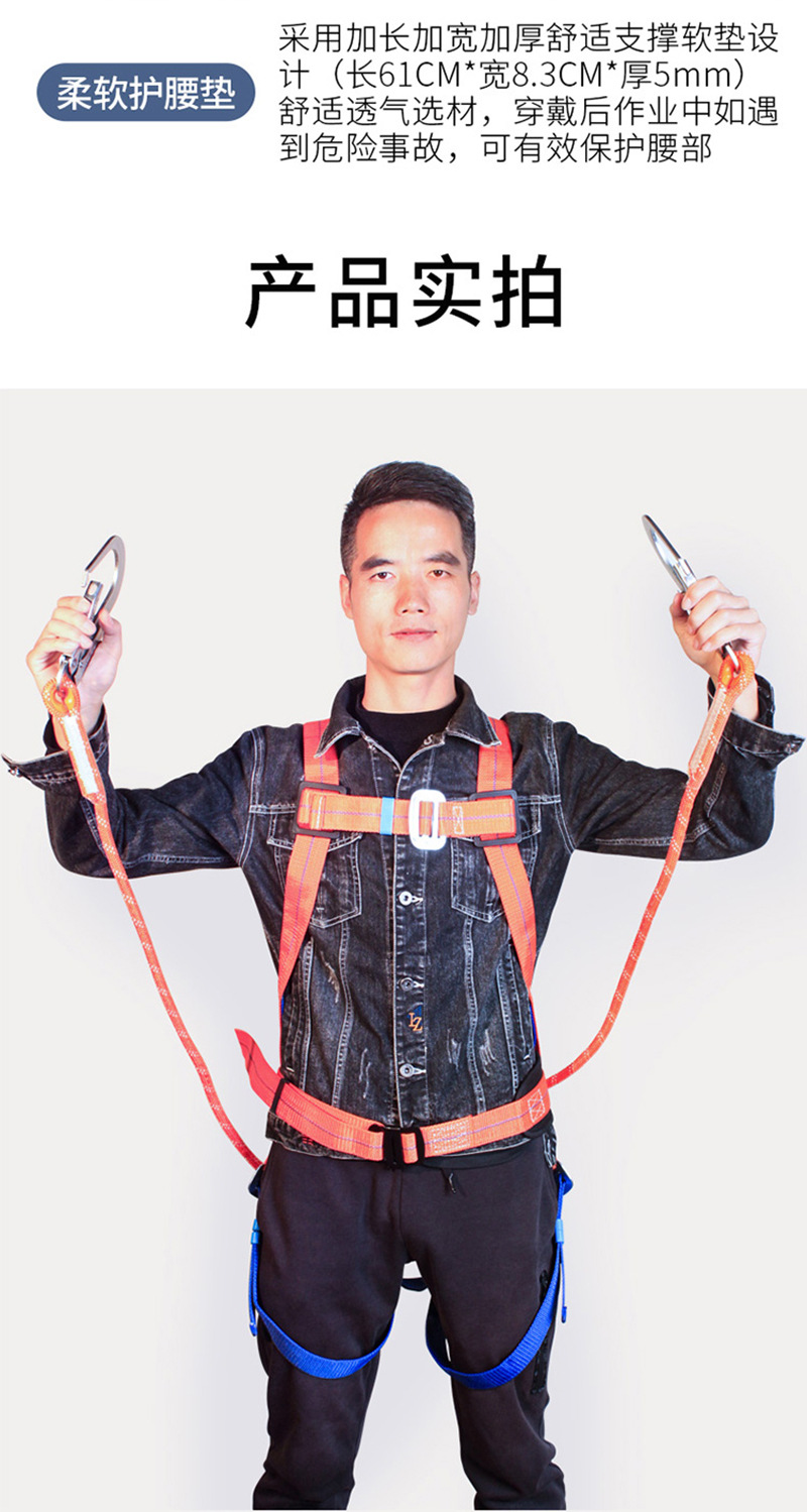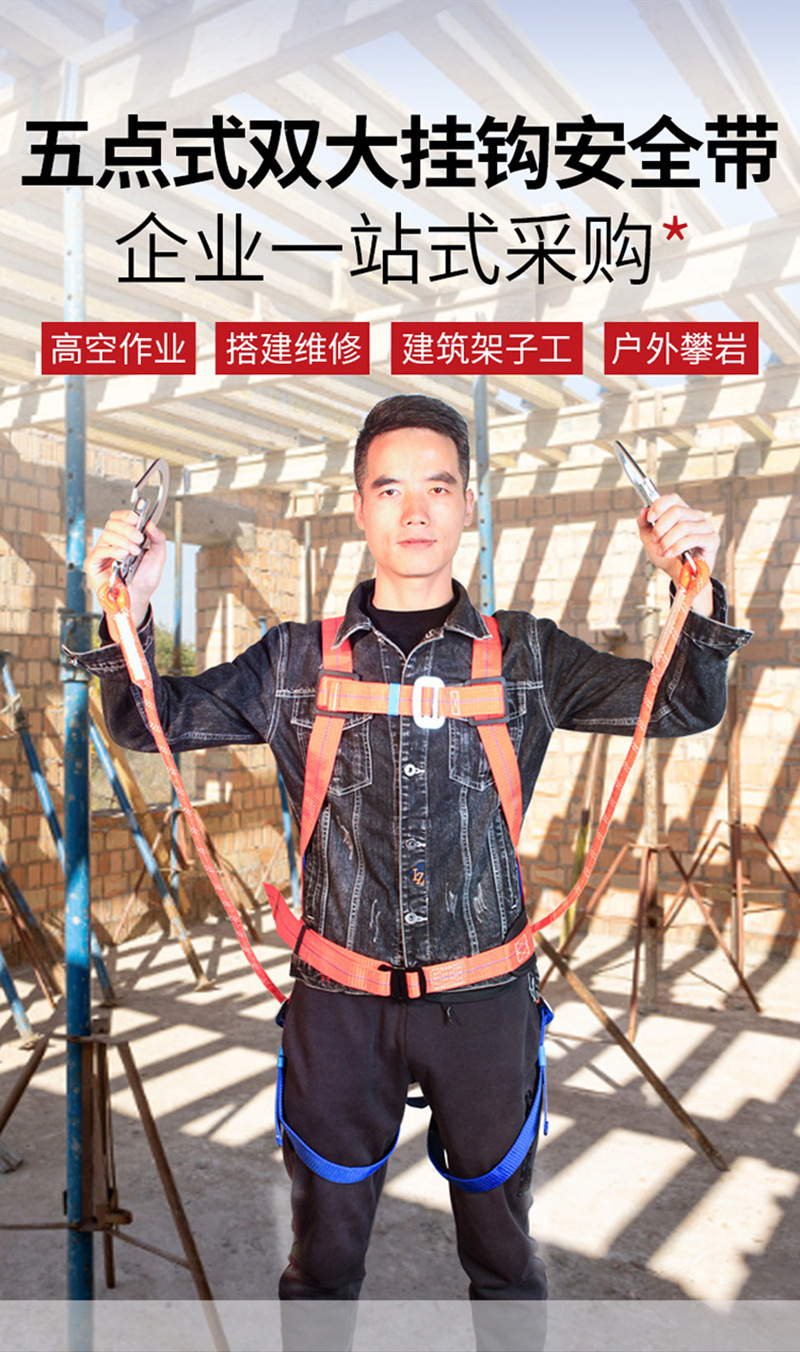 Chengkai Technology 국가 표준 5점 안전 벨트 고공 작업 이중 대형 후크 안전 로프 CKB-AQD001 오렌지 블루스토어 가기