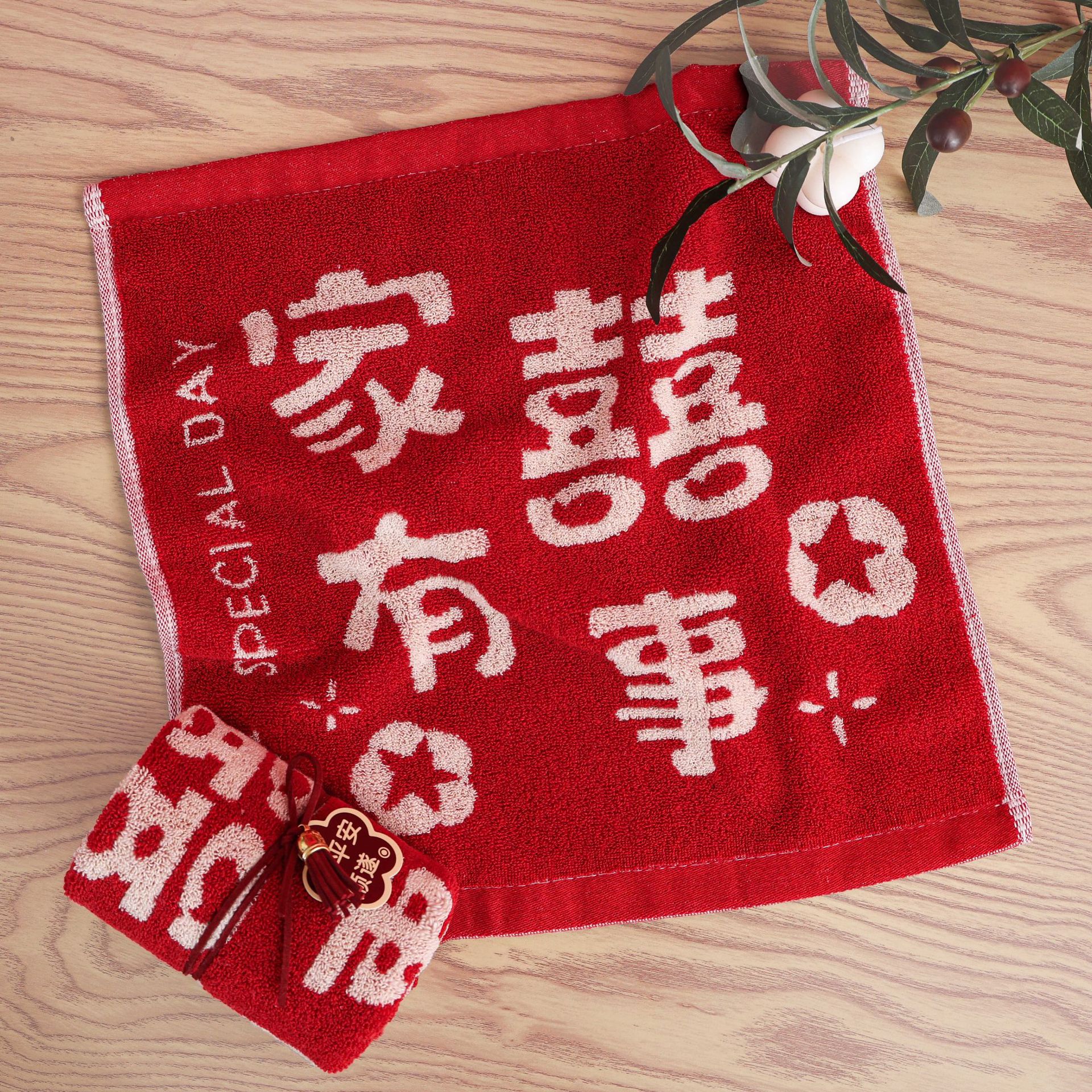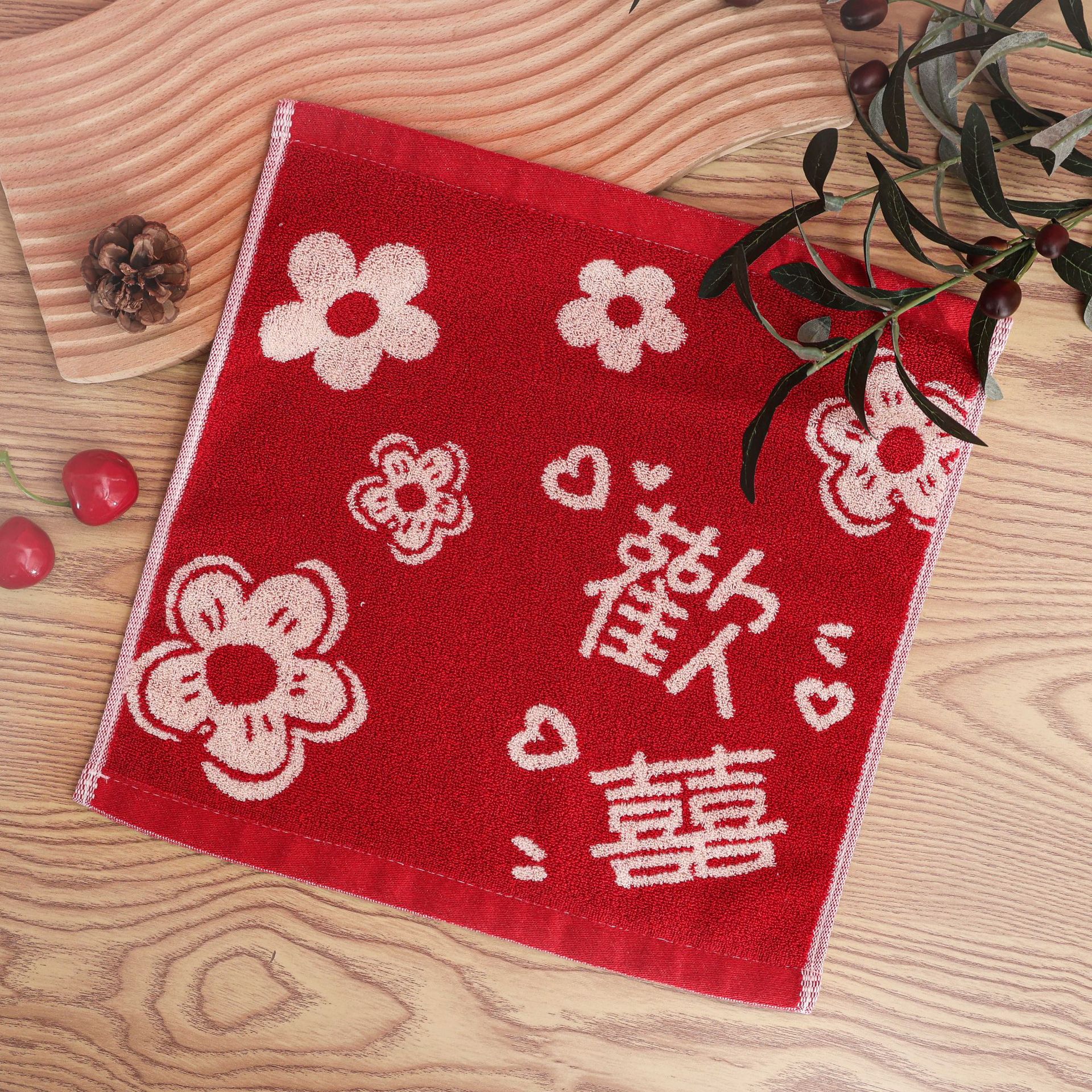 순수 코튼 기념품 수건 웨딩 샵 신부 들러리 휴일 용품 빅 레드 웨딩 수건 기념품 도매스토어 가기