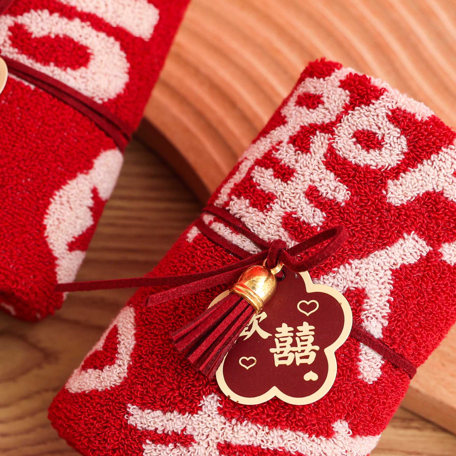 순수 코튼 기념품 수건 웨딩 샵 신부 들러리 휴일 용품 빅 레드 웨딩 수건 기념품 도매