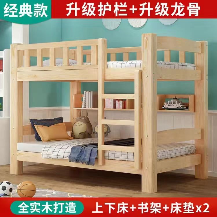 단단한 나무 이층 침대, 높고 낮고 두꺼운 어린이 침대, 어린이 침대, 소형 성인용 2층 기숙사 이층 침대