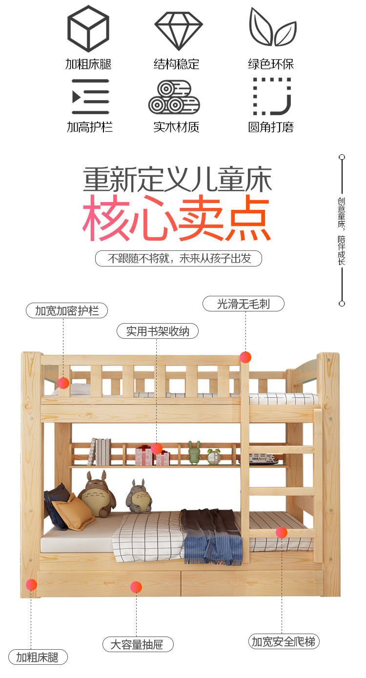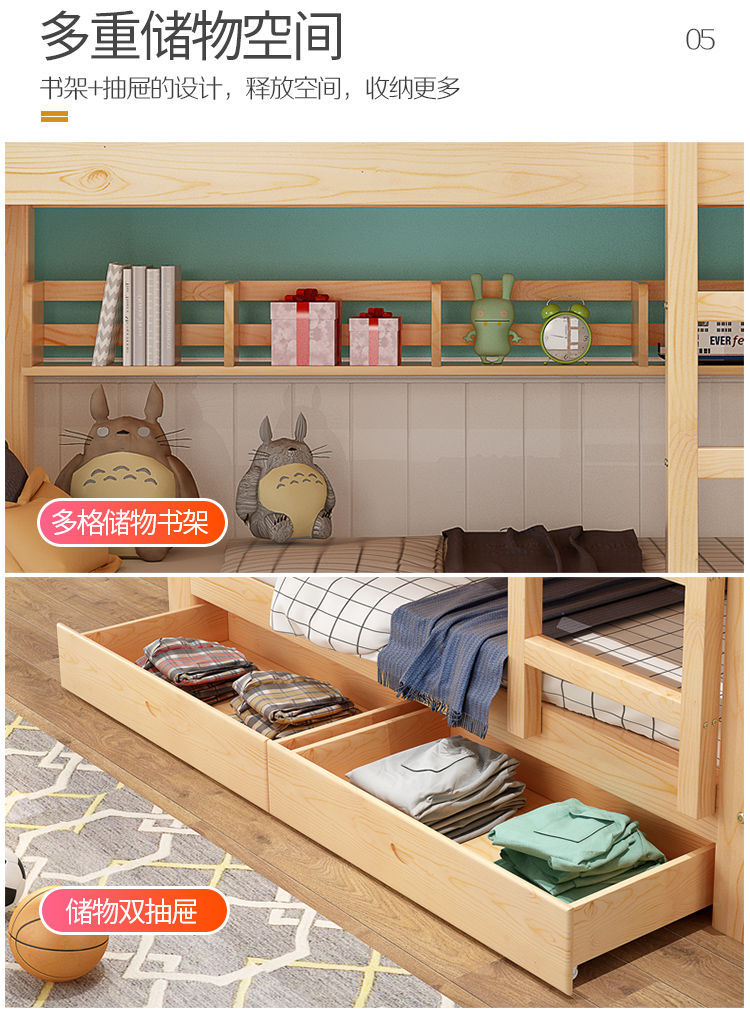 단단한 나무 이층 침대, 높고 낮고 두꺼운 어린이 침대, 어린이 침대, 소형 성인용 2층 기숙사 이층 침대스토어 가기