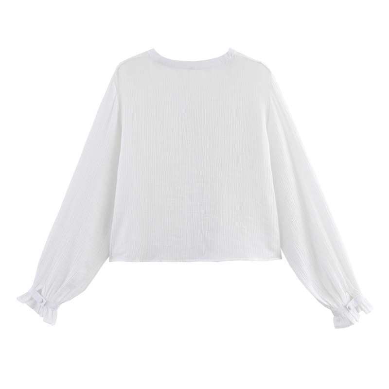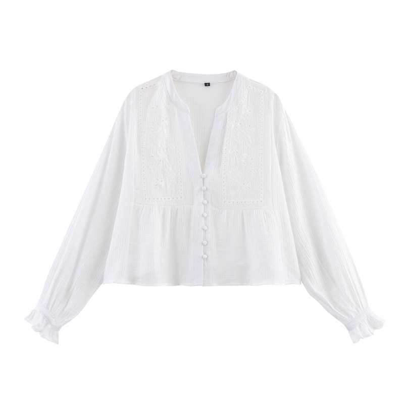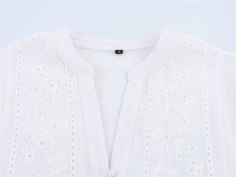 짧은 유럽과 미국 스타일의 여성 의류 패션 캐주얼 중공 셔츠 자수 느슨한 봄 여름 대외 무역 새로운 스타일