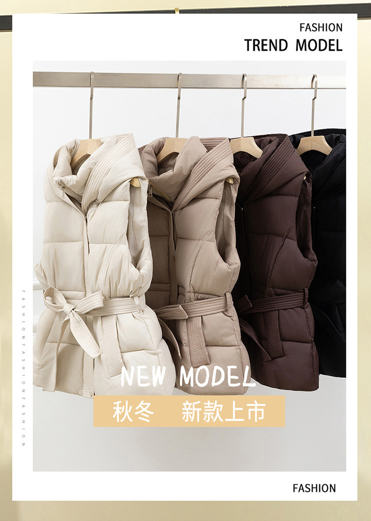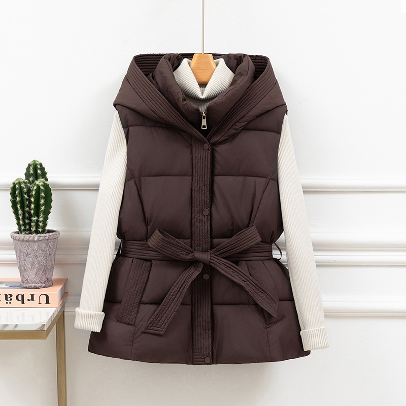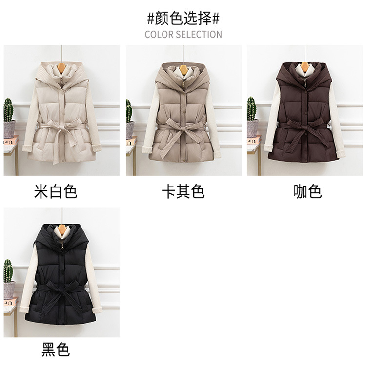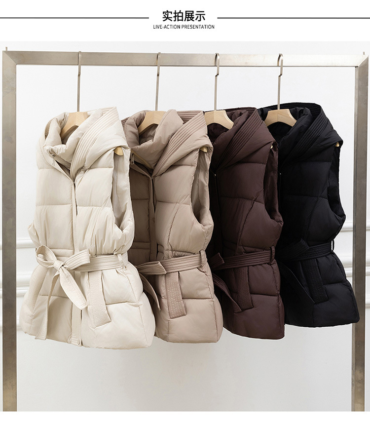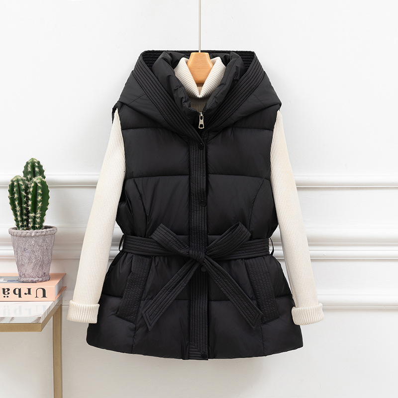 면 조끼 여성 짧은 2025 가을, 겨울 새로운 한국어 스타일 두꺼운 면 조끼 슬림 후드 벨트 따뜻한 재킷스토어 가기