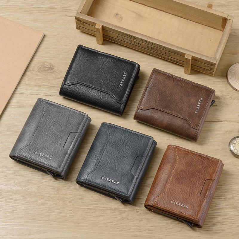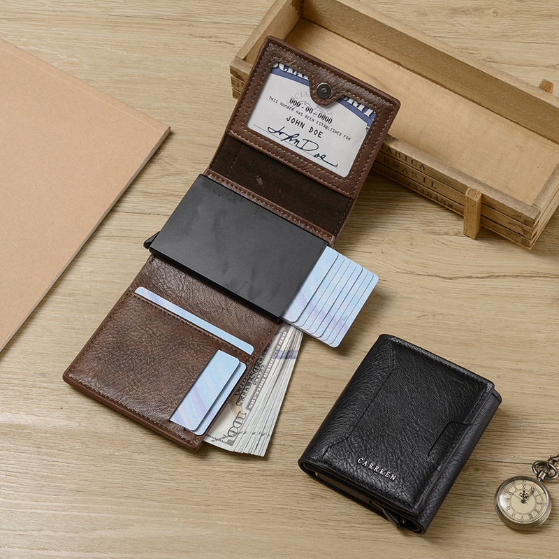 CarrKen 새로운 남성용 카드 홀더 자동 팝업 카드 상자 다기능 RFID 지갑 알루미늄 상자 지갑 카드 홀더