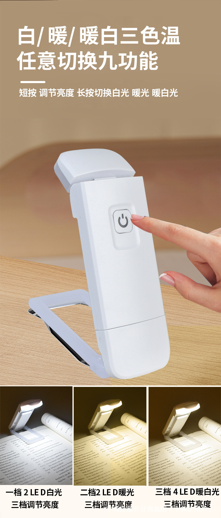 국경 간 USB 충전 독서 램프 휴대용 미니 클립 램프 작은 테이블 램프 포켓 램프 야간 조명 접이식 책 클립 램프