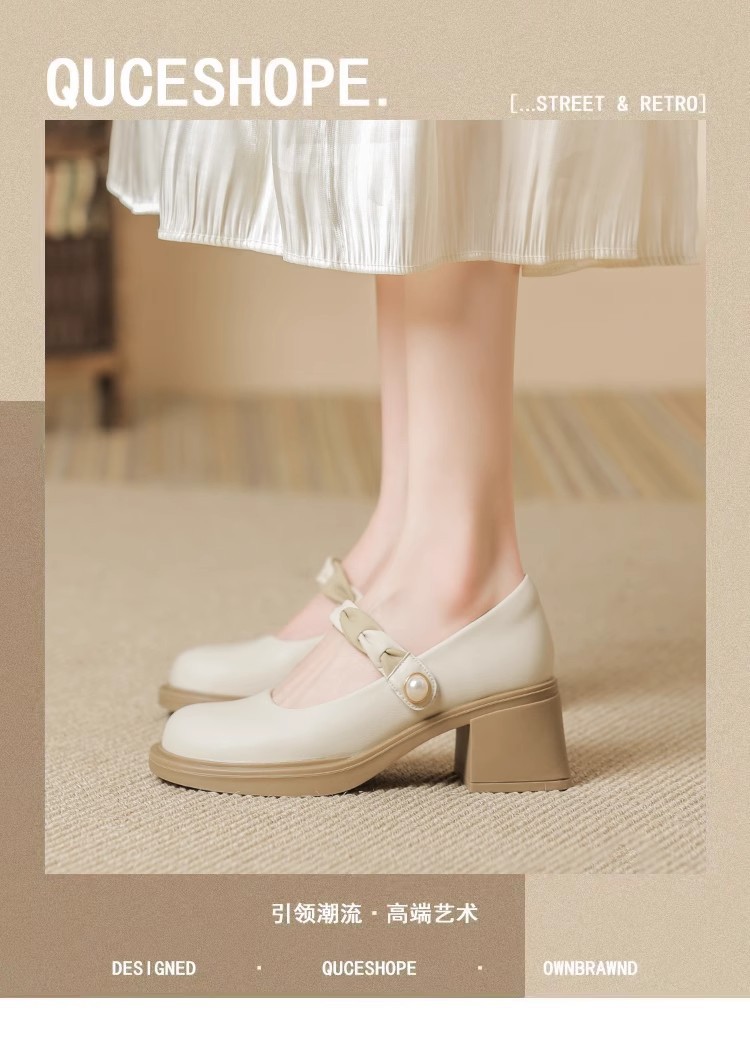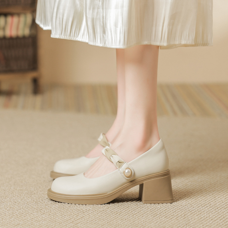 하이힐 샌들 2025 봄 여름 신작 메리 제인 신발 하이힐 여성 프렌치 작은 가죽 신발 두꺼운 굽 요정 스타일 신발스토어 가기