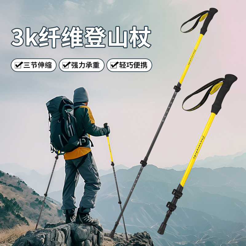 맞춤형 공장 대외 무역 도매 야외 전문 트레킹 스틱 여행 하이킹 장비 3 섹션 텔레스코픽 탄소 섬유 초경량스토어 가기