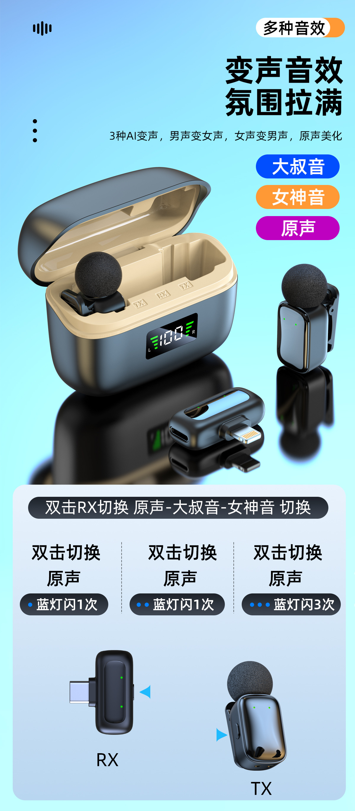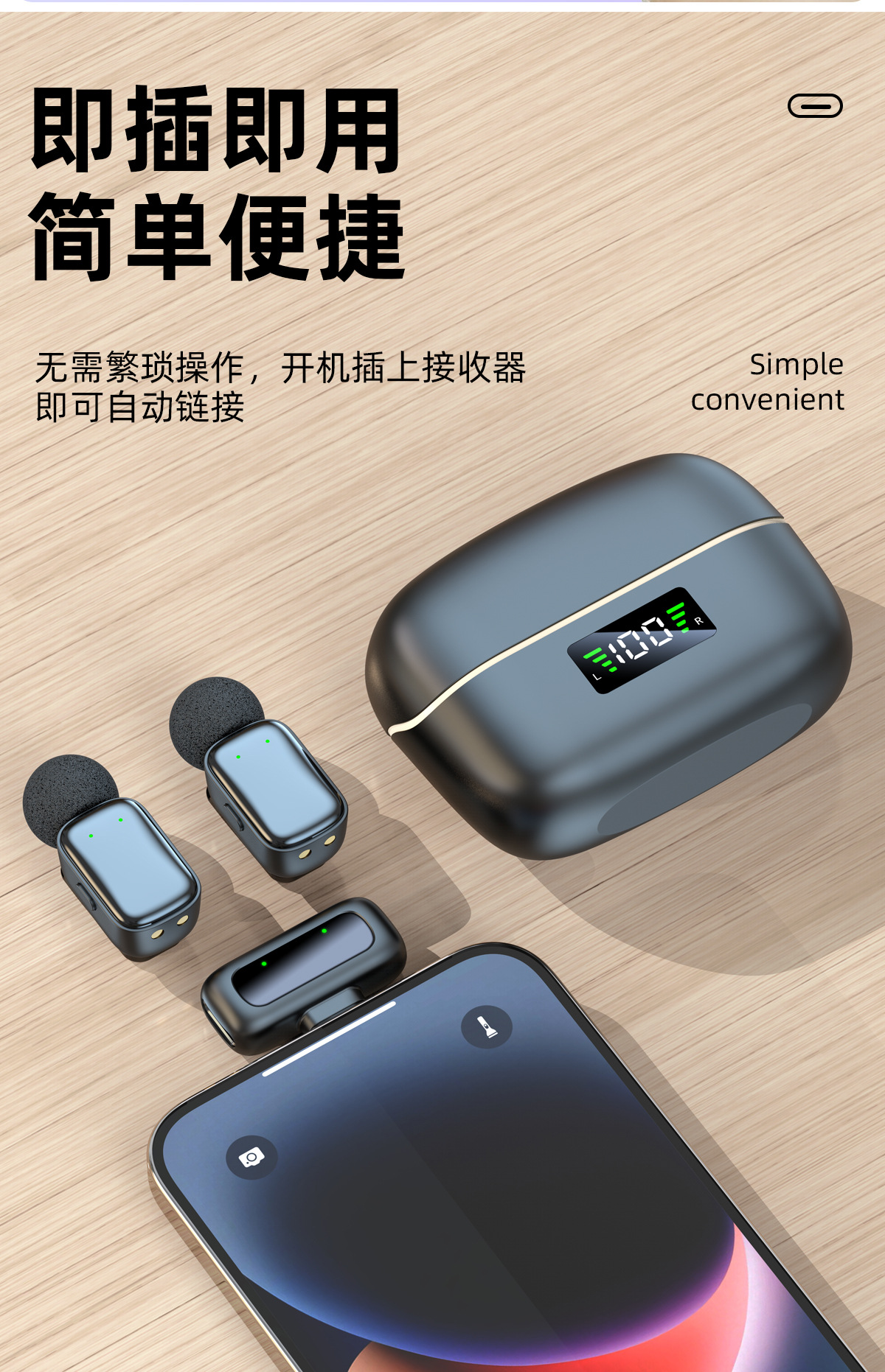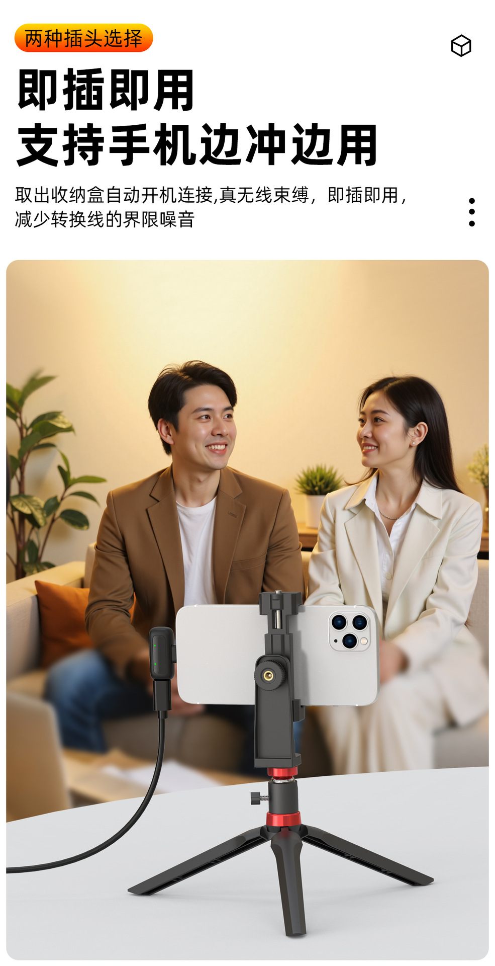 국경 간 새로운 미니 1-2 무선 라발리에 마이크 야외 라이브 스트리밍 지능형 소음 감소 미니 라디오 마이크