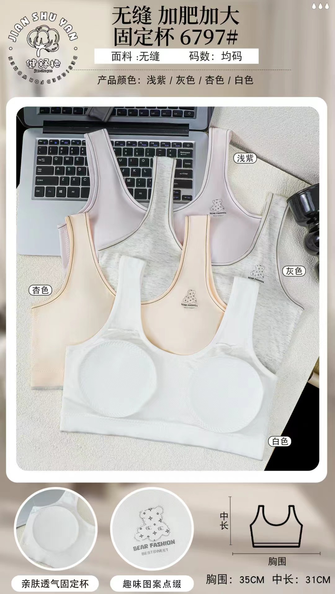 Jianshuyan 원활한 플러스 사이즈 학생 속옷 고정 컵 귀여운 패턴 부드럽고 피부 친화적인 발달 소녀 조끼