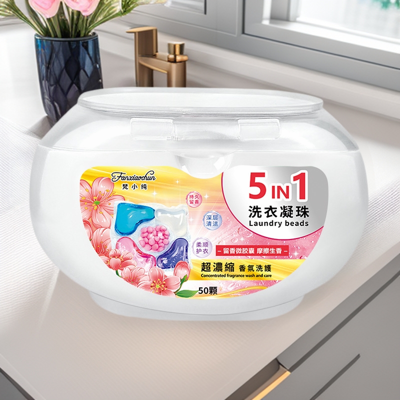 오래 지속되는 향, 오염 제거 및 부드러운 세탁 비즈가 포함된 박스형 50개 5 챔버 세탁 비즈, 농축된 향기 세탁 비즈 제조업체