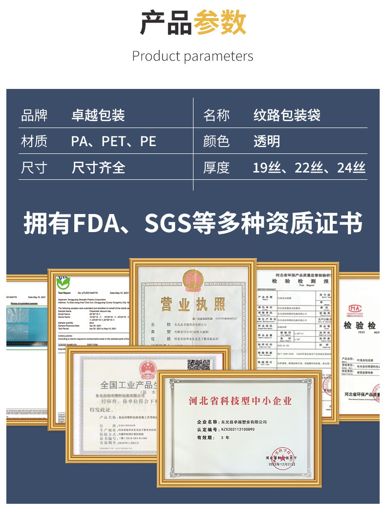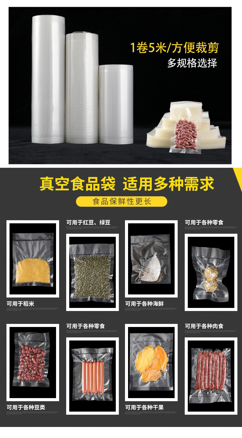 纹路真空袋家用食品级密封透明保鲜袋抽真空尼龙压缩真空包装袋