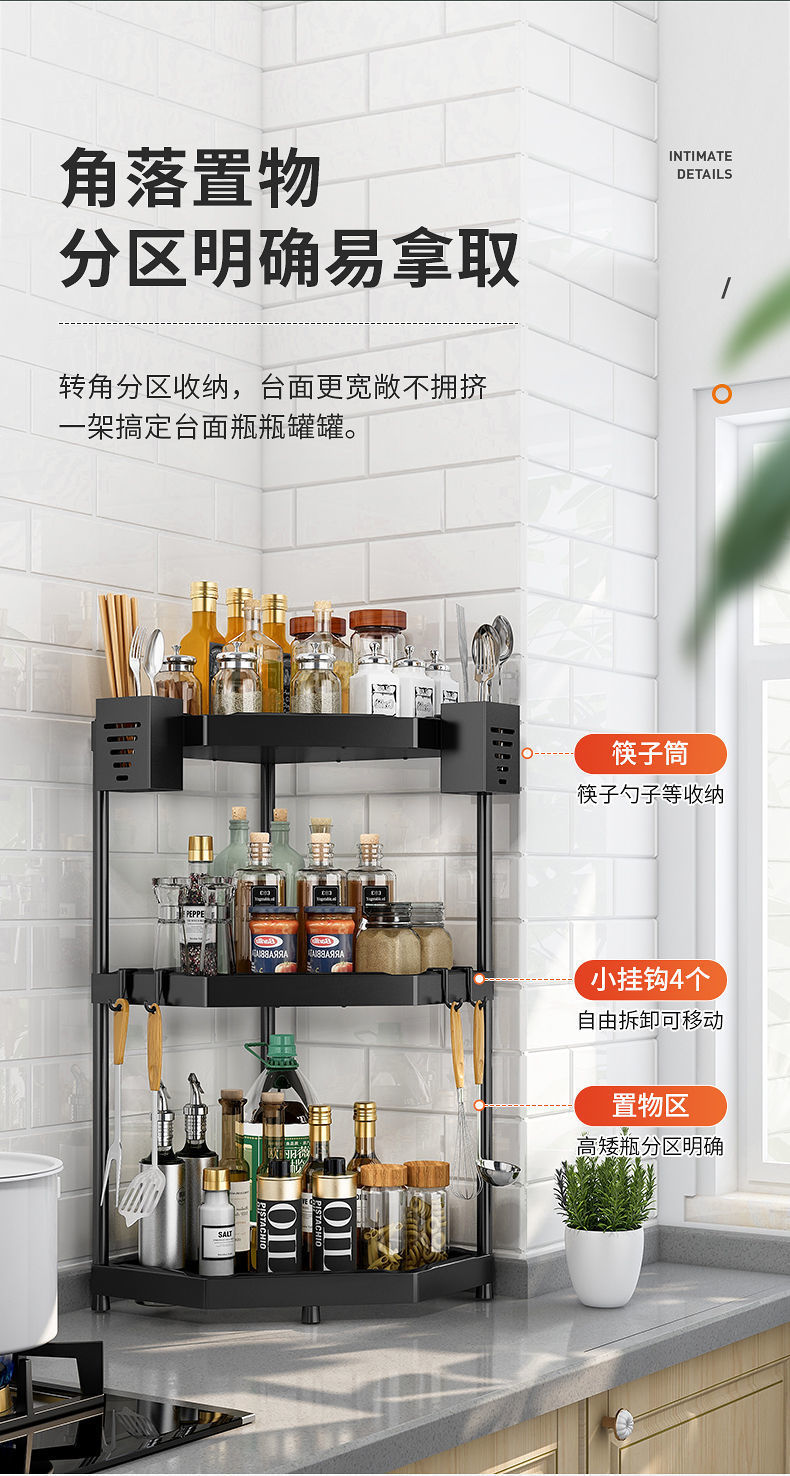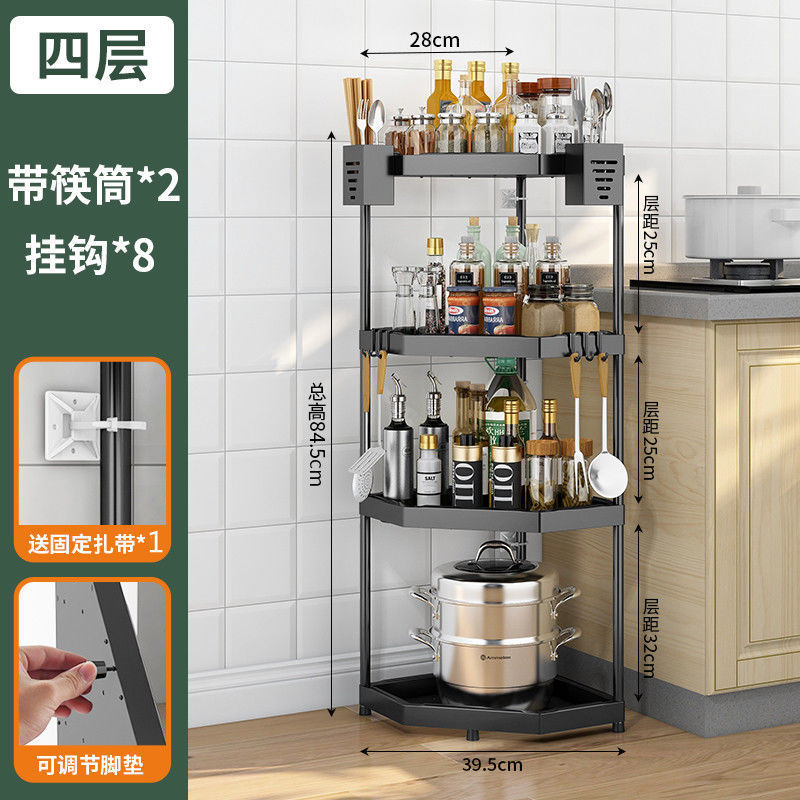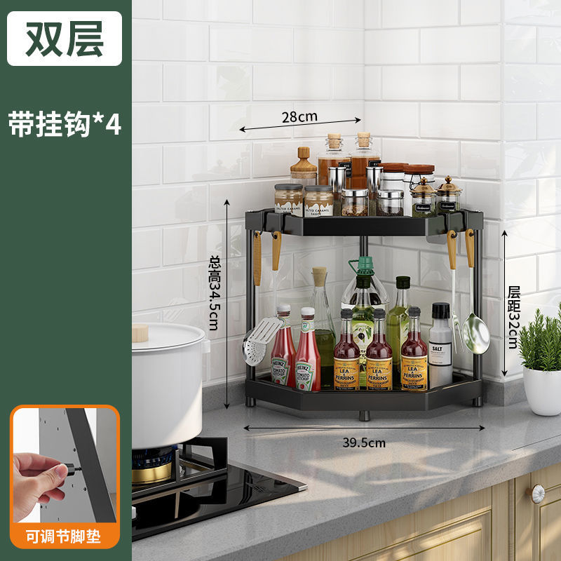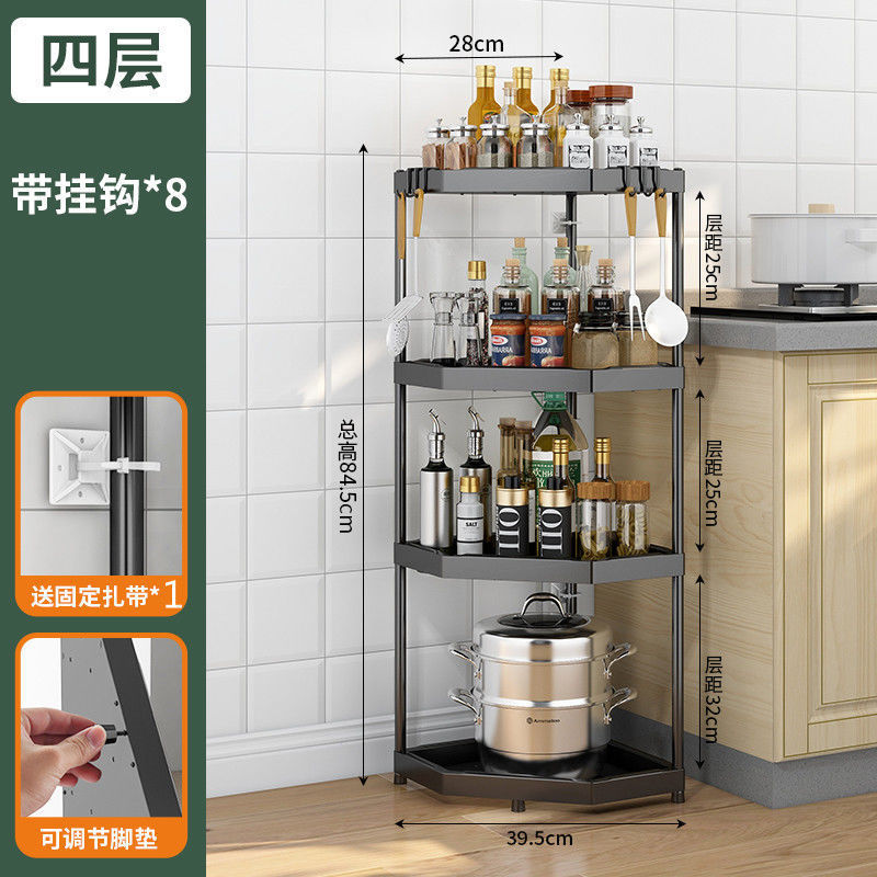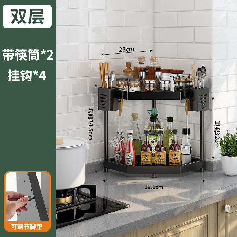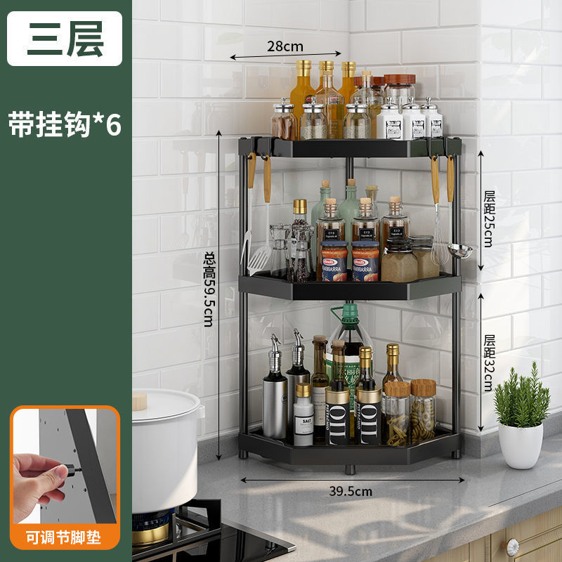 검은색 주방 수납 선반 코너 다층 펀치 없는 간장 식초 코너 바닥 조미료 선반 조리대 수납 선반