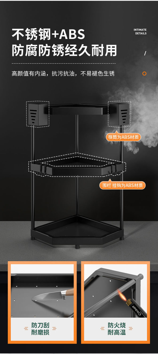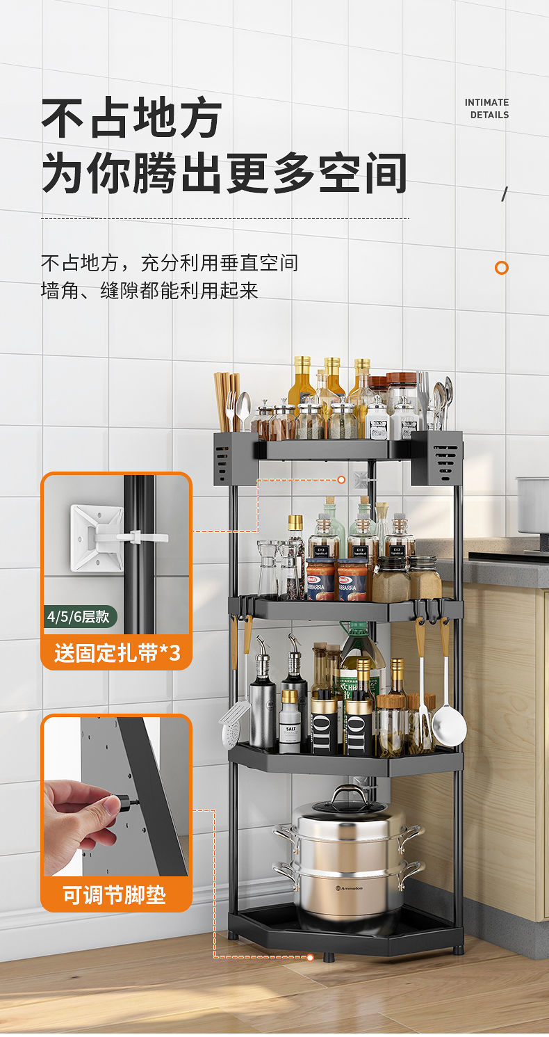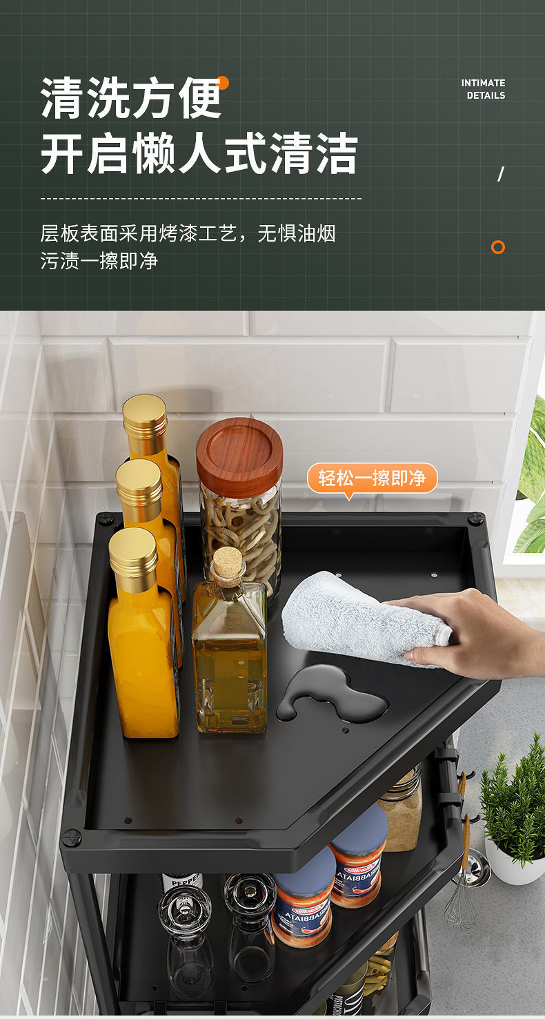 검은색 주방 수납 선반 코너 다층 펀치 없는 간장 식초 코너 바닥 조미료 선반 조리대 수납 선반