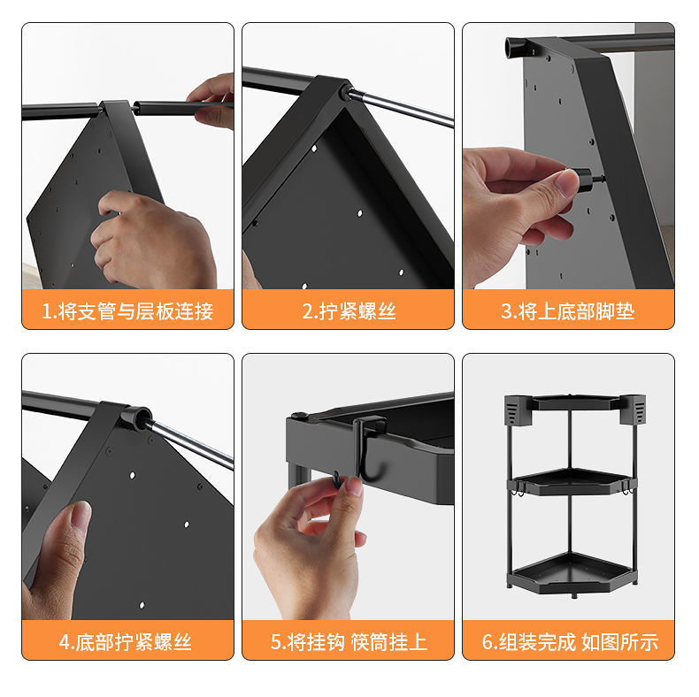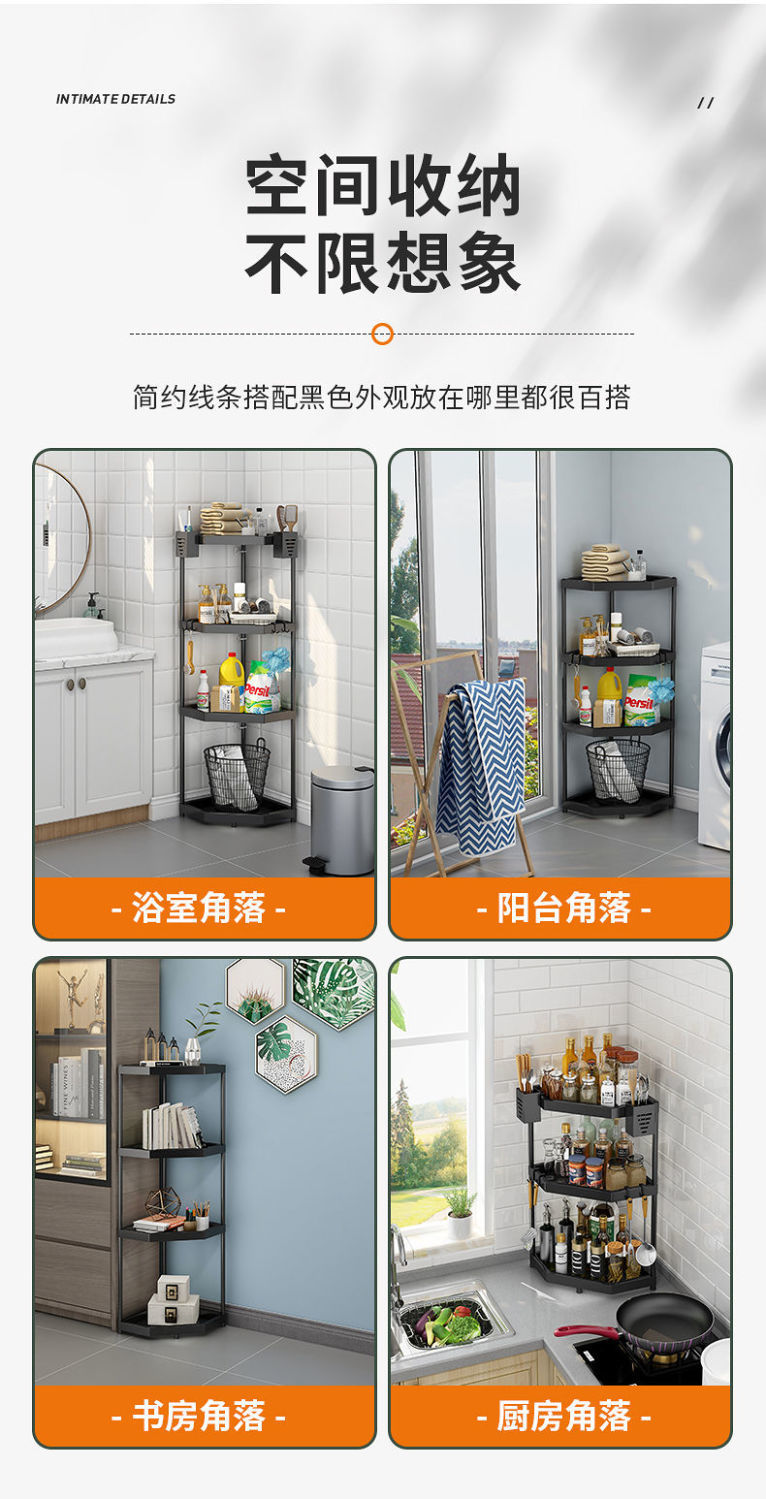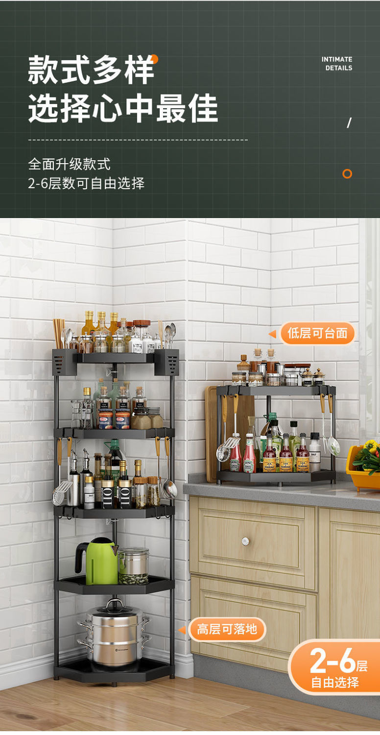 검은색 주방 수납 선반 코너 다층 펀치 없는 간장 식초 코너 바닥 조미료 선반 조리대 수납 선반스토어 가기