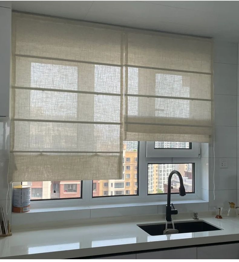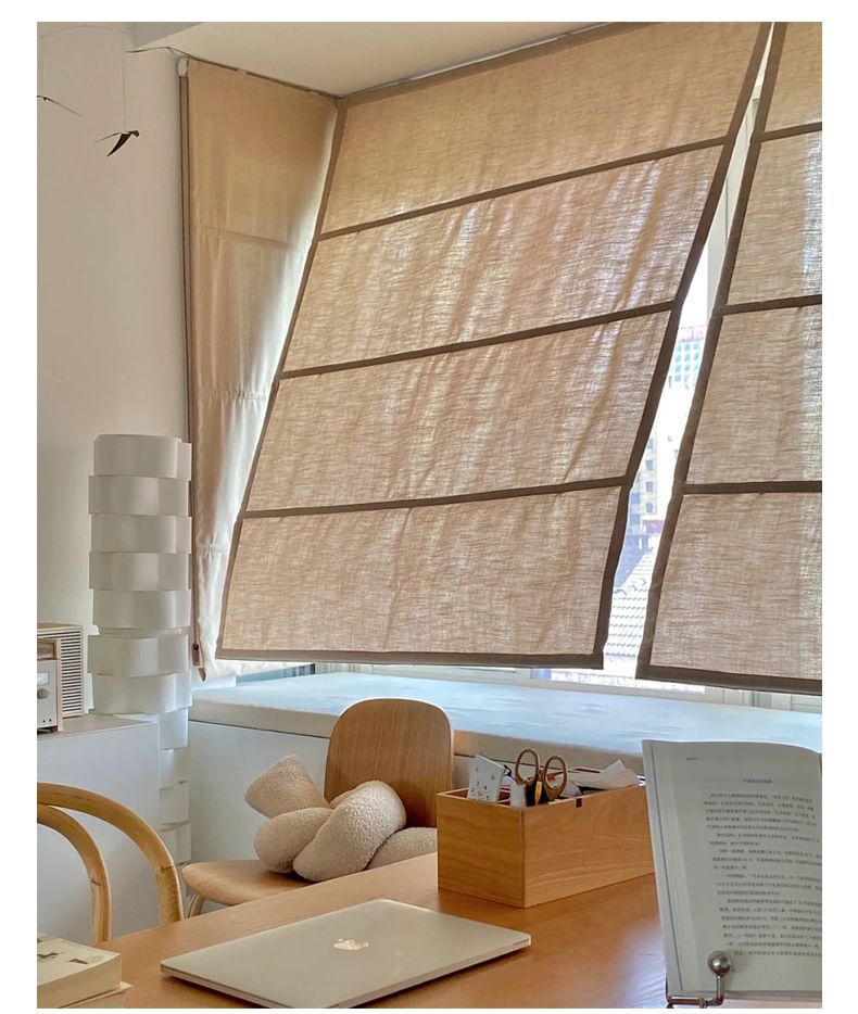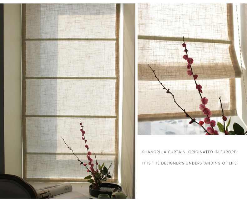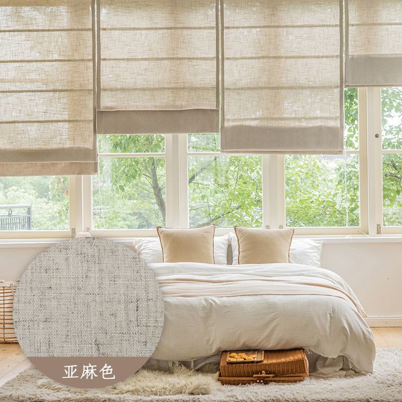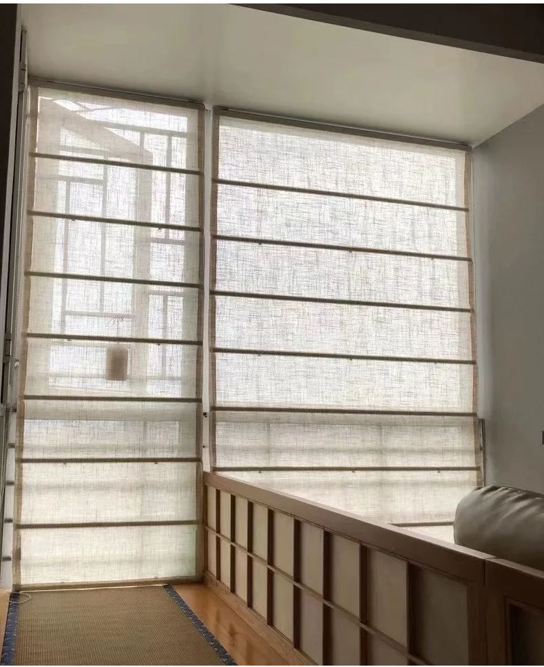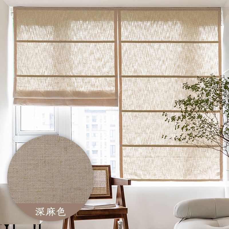 중국식 린넨 로마 커튼, 면 및 린넨 플로어 창 침실 리프팅 커튼, 블라인드, 반커버 커튼, 창문 바람막이
